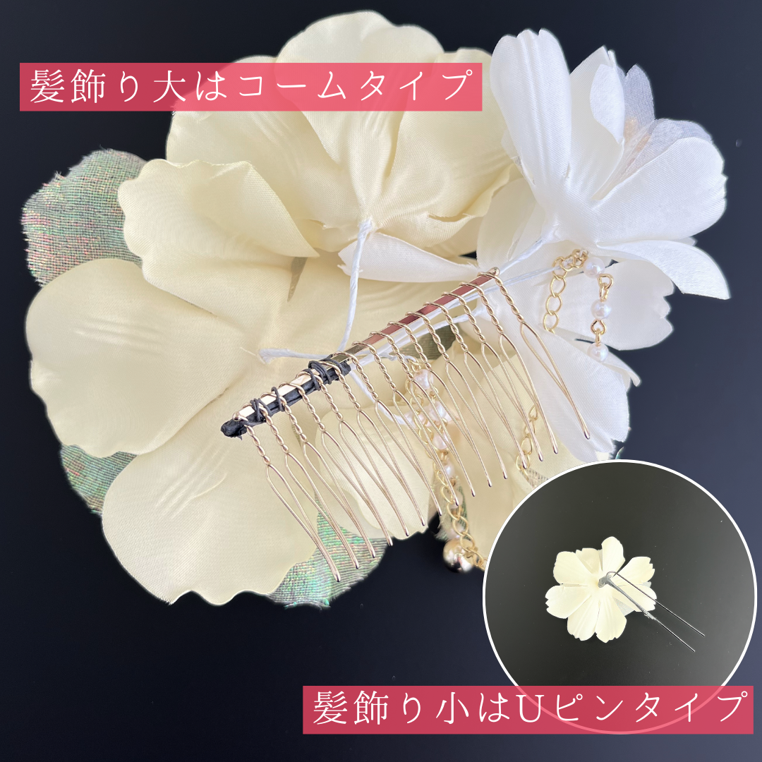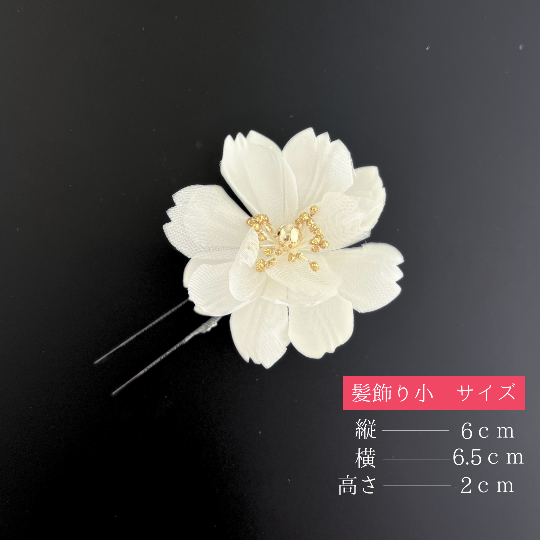 髪飾り小:縦約6cm×横約6.5cm×高さ約2cm(Uピン仕様)