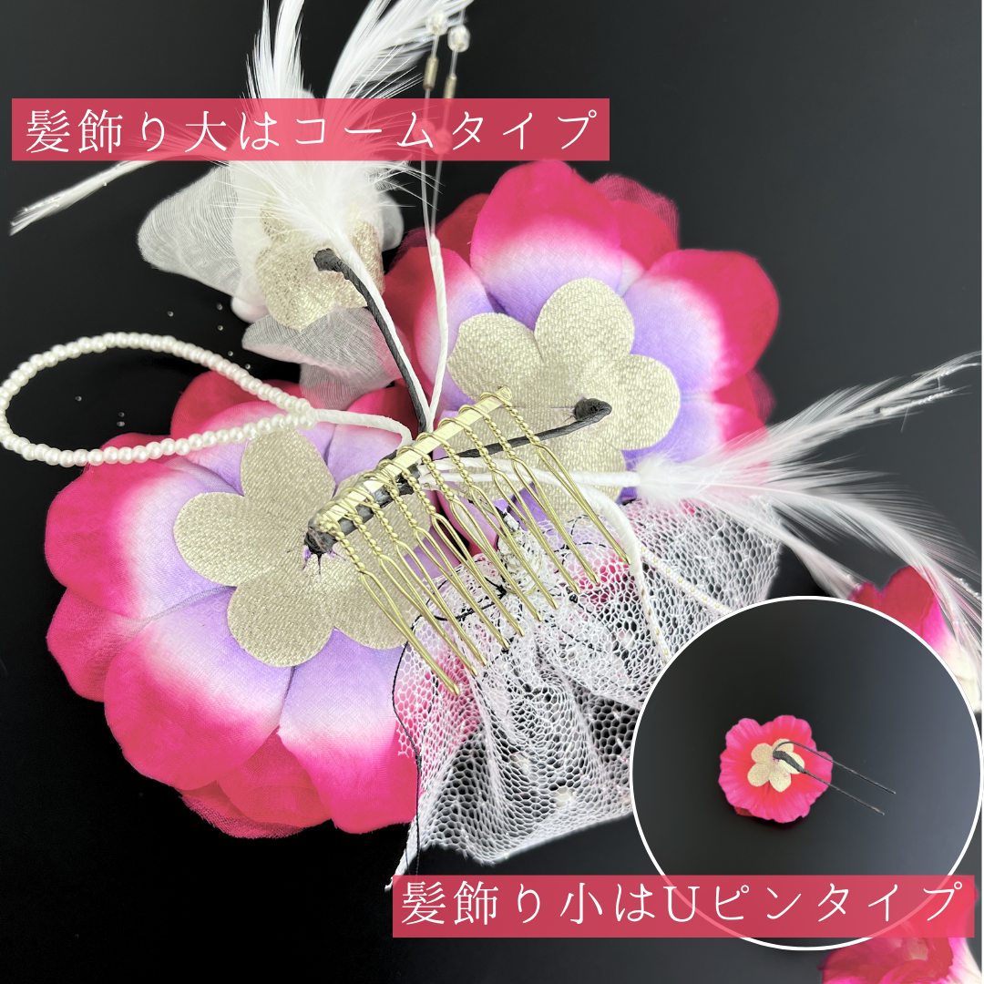 髪飾り小:縦約5cm×横5cm×高さ約3cm(Uピン仕様)