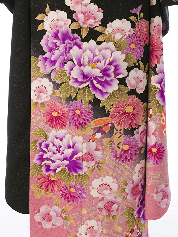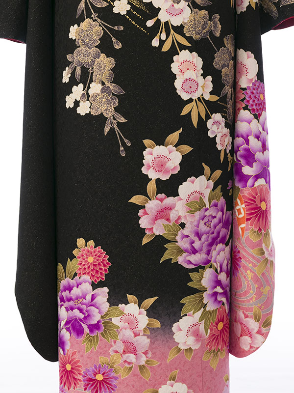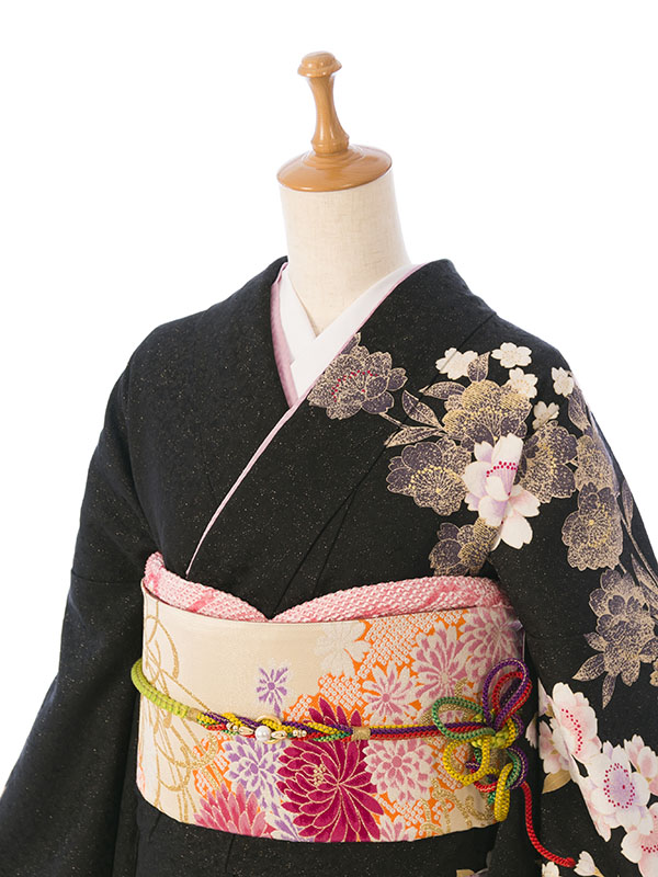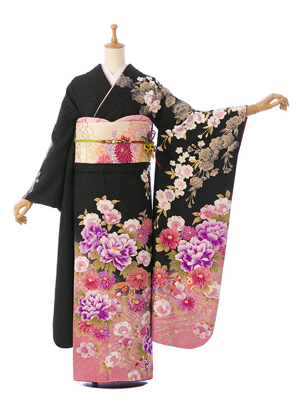 振袖|黒系|桜 牡丹 |6S357|対応身長:155-165cm|サイズ:7号-13号