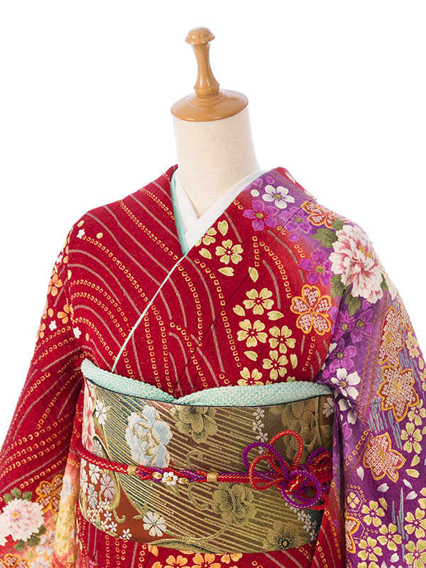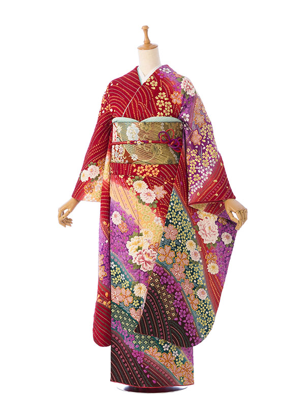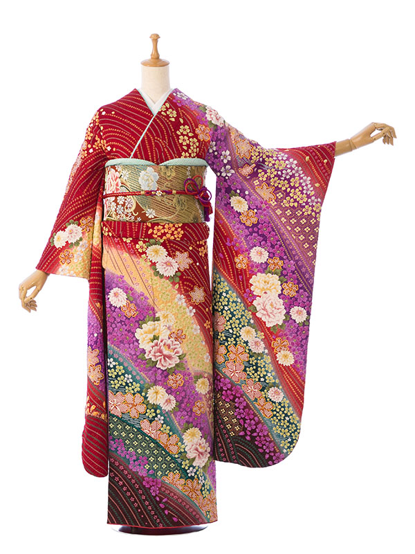 振袖|赤系|桜 牡丹 |6S218|対応身長:150-160cm|サイズ:7号-13号