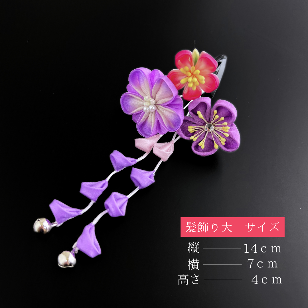 髪飾り大(パッチンピン):縦約14cm×横約7cm×高さ約4cm(藤さがり含む)