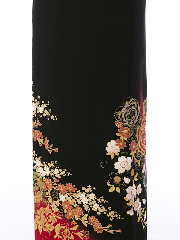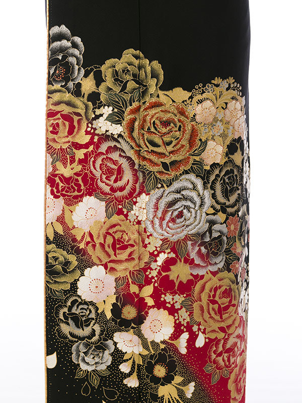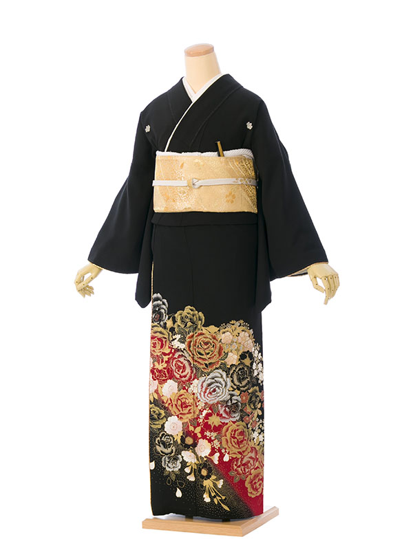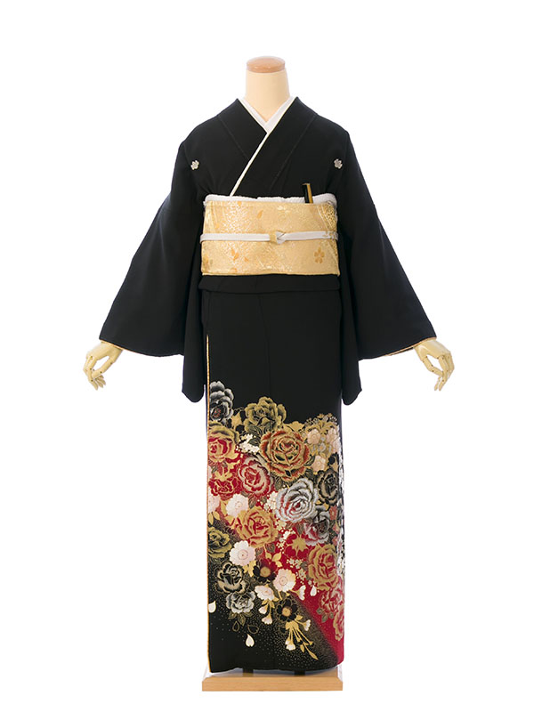 黒留袖: 桂由美 赤 バラに桜 金のたたき