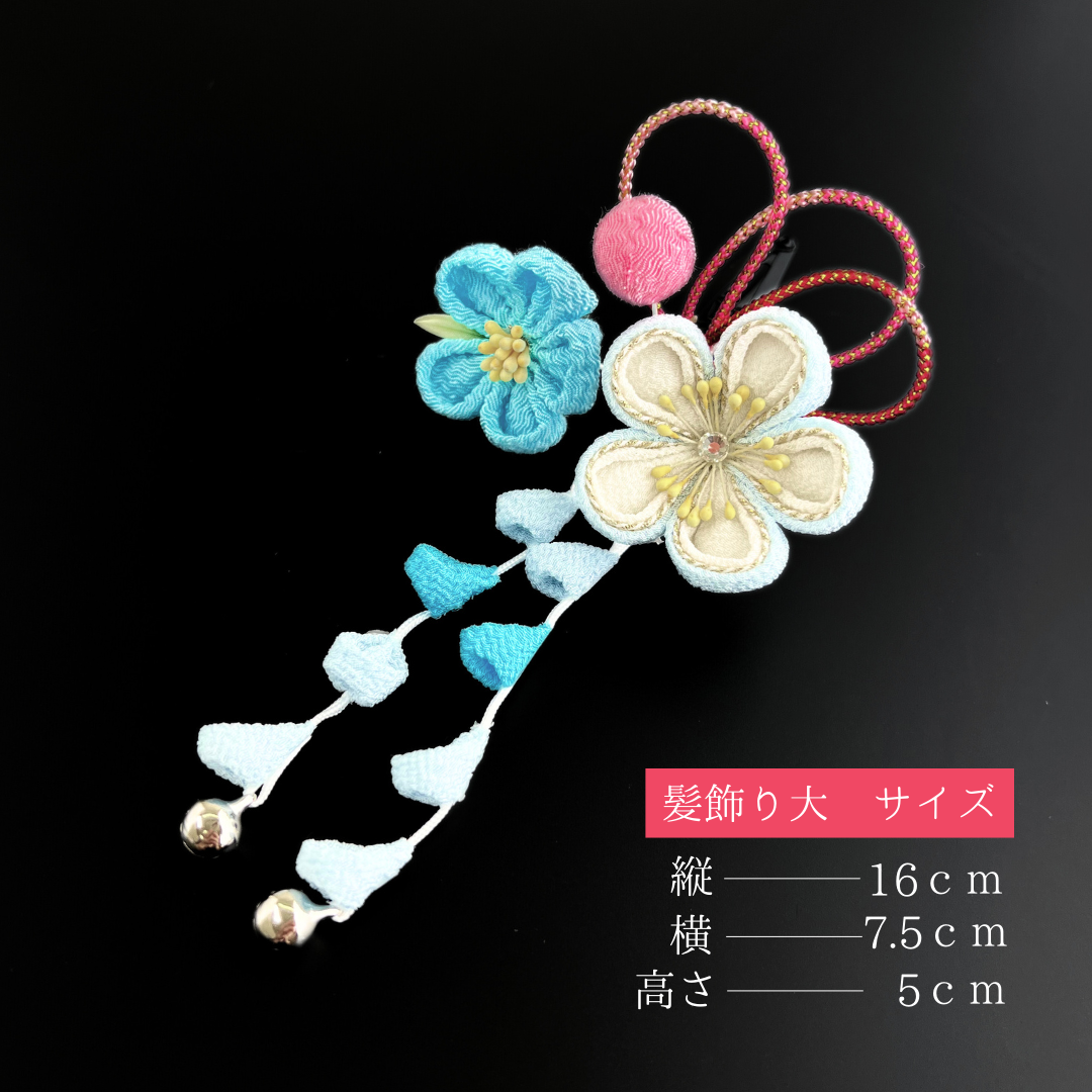 髪飾り大(パッチンピン):縦約16cm×横約7.5cm×高さ約5cm(藤さがり含む)