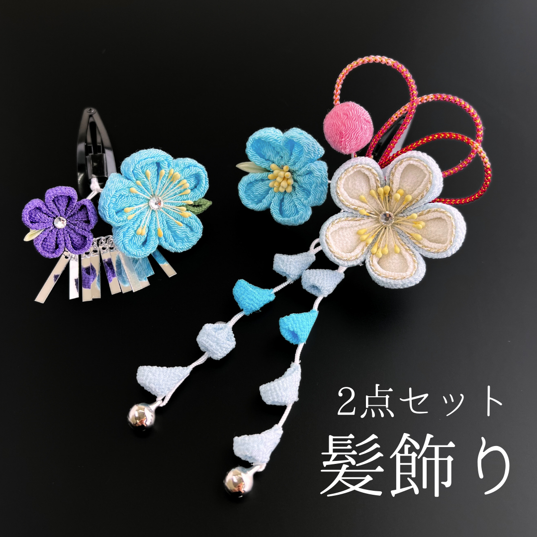 ちりめん生地の繊細なつまみ細工が、お子様の晴れ着姿を引き立てます。