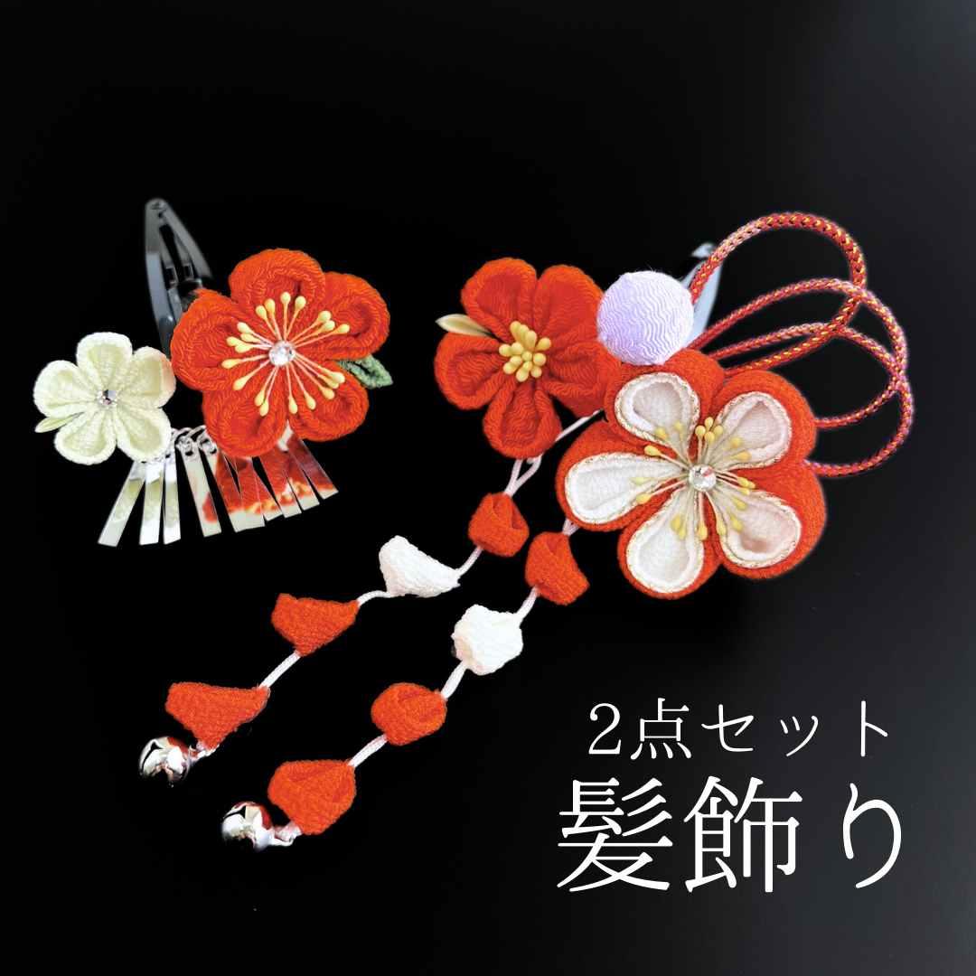 ちりめん生地の繊細なつまみ細工が、お子様の晴れ着姿を引き立てます。