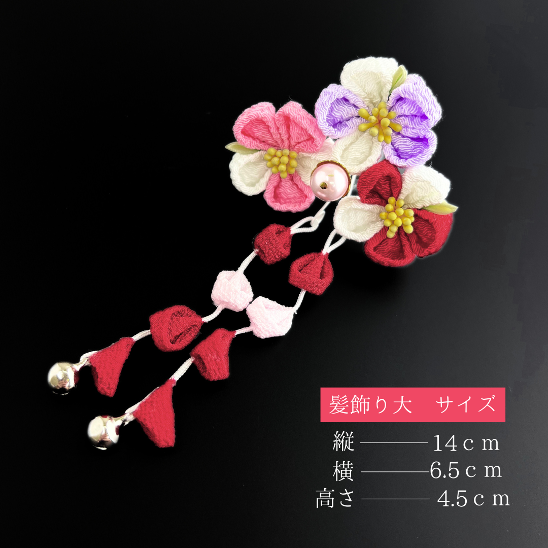髪飾り大(パッチンピン):縦約14cm×横約6.5cm×高さ約4.5cm(藤さがり含む)