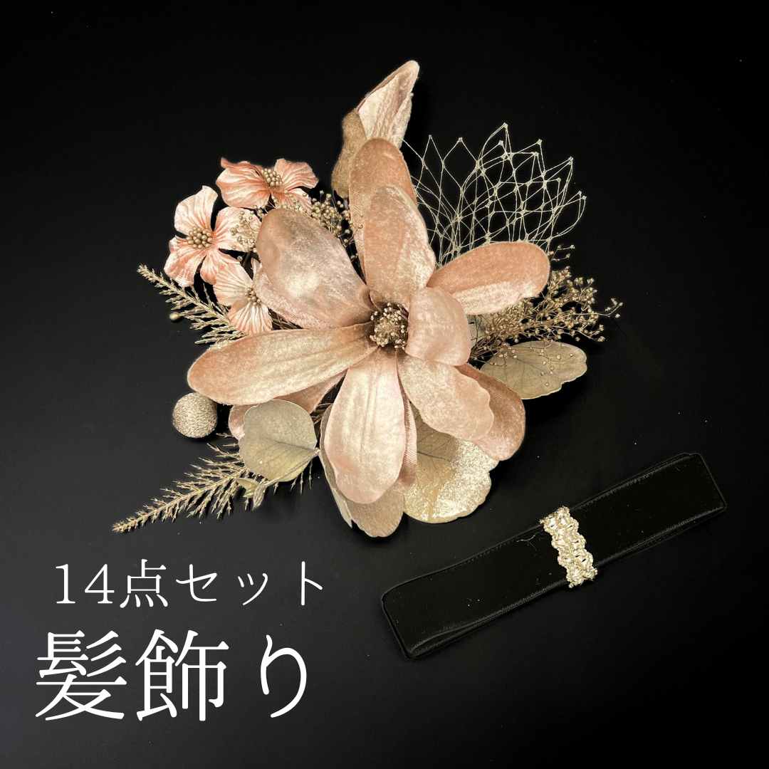 落ち着いたゴールドを基調にした大人っぽい髪飾りです。