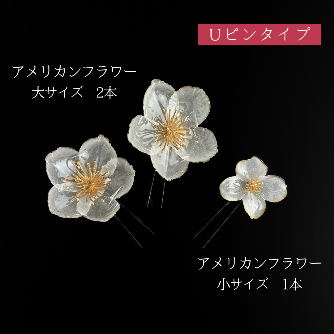透明感のあるアメリカンフラワーをメインにしたボリュームのある髪飾り