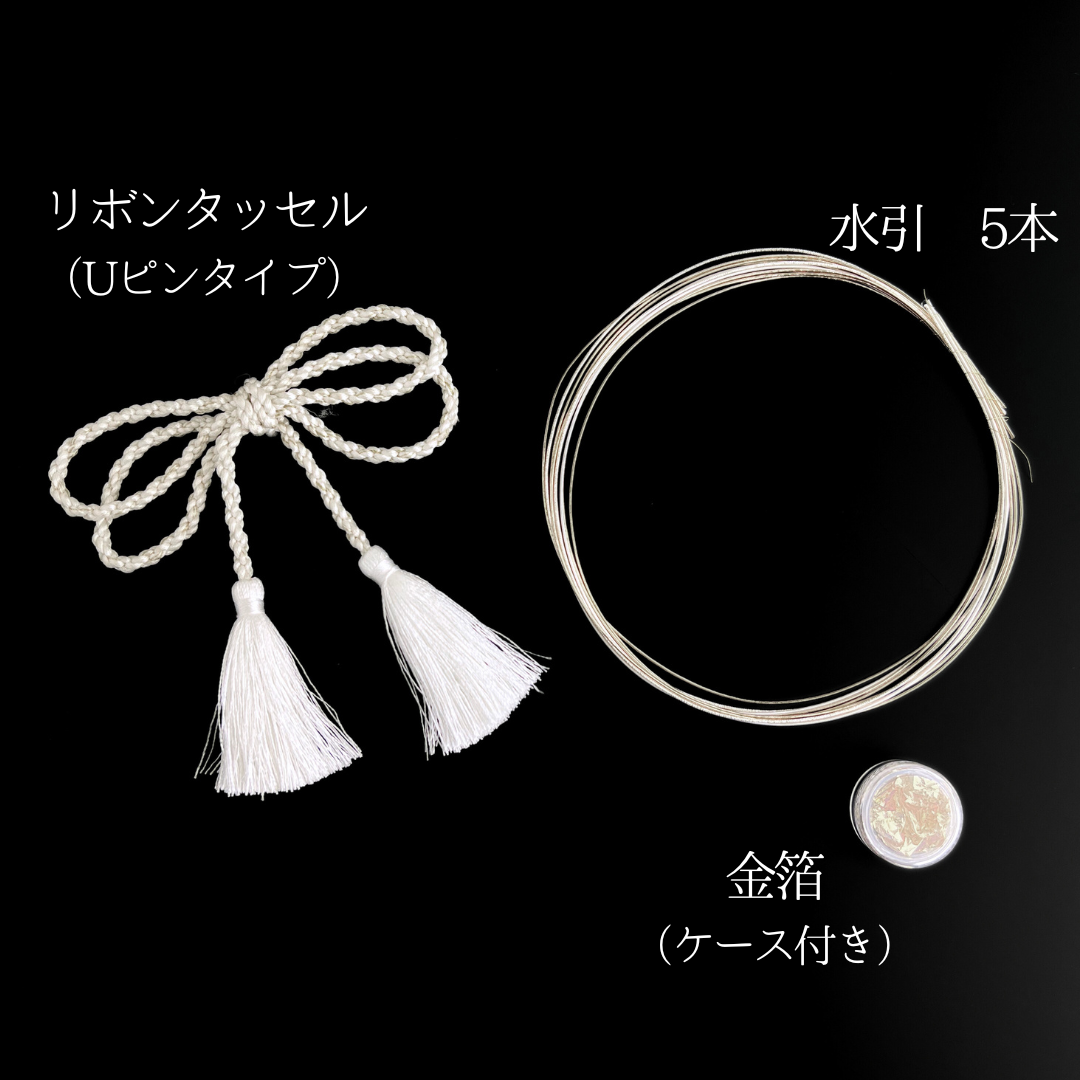 水引:ご祝儀袋などに使われる和紙の紐(長さ約90~92㎝ 金1本、白1本、白×金1本)