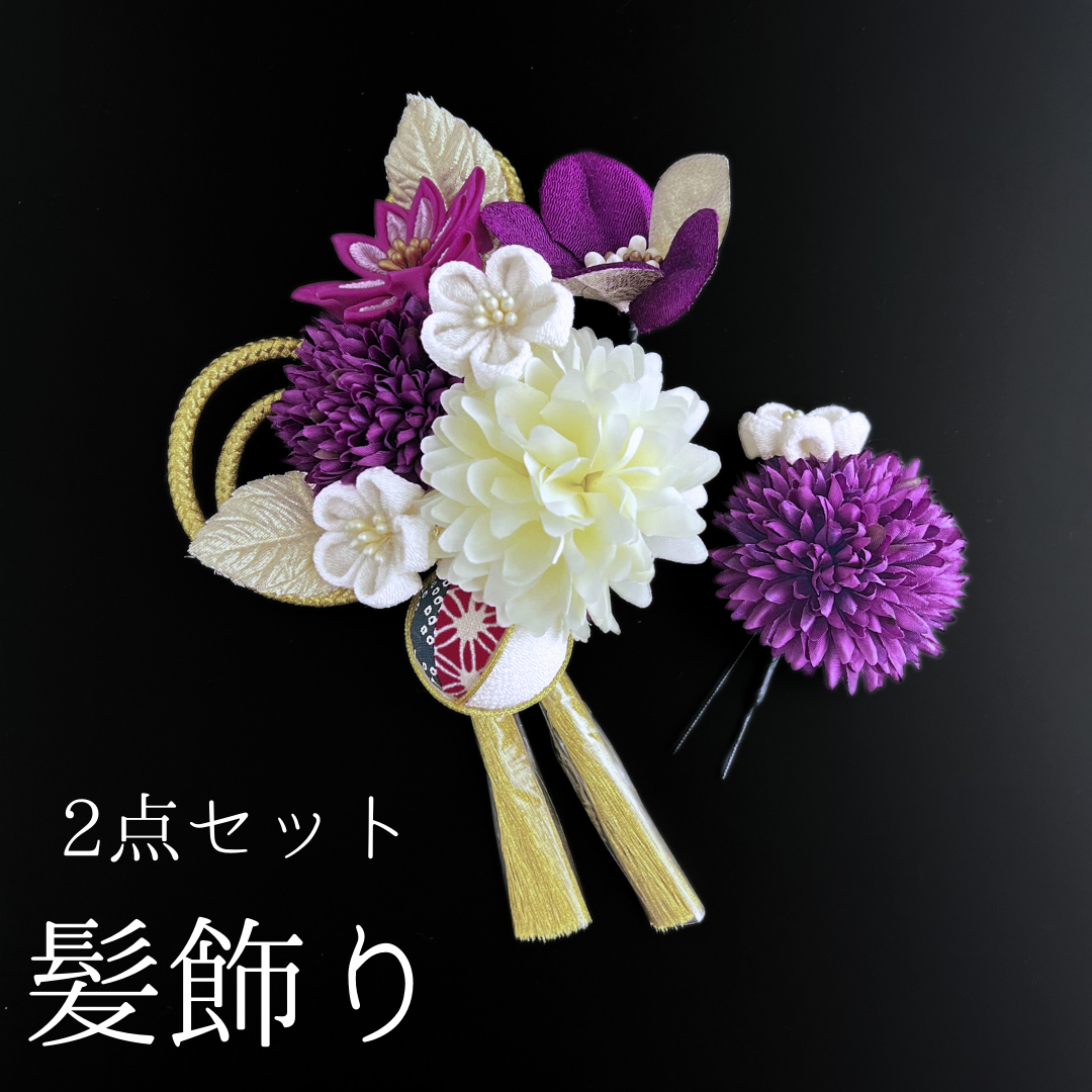 紫×ゴールドの組み合わせが高級感溢れるゴージャスな髪飾りです。