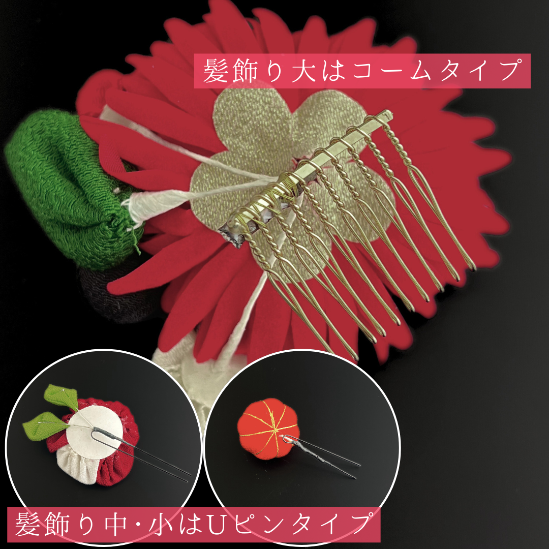 髪飾り小:縦約3.5cm×横約3.5cm×高さ約2cm(Uピン仕様)