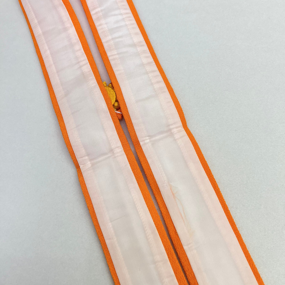 サイズ:縦約5.5cm×横約125cmカラー:オレンジ ※商品写真は撮影状況、お客様の表示環境などにより実物と印象の異なる場合がございます 予めご了承ください生地:絹100%(お手入れはドライクリーニングでおねがいします。)商品の状態:新品 未使用※未使用ですが、撮影の為開封済みです
