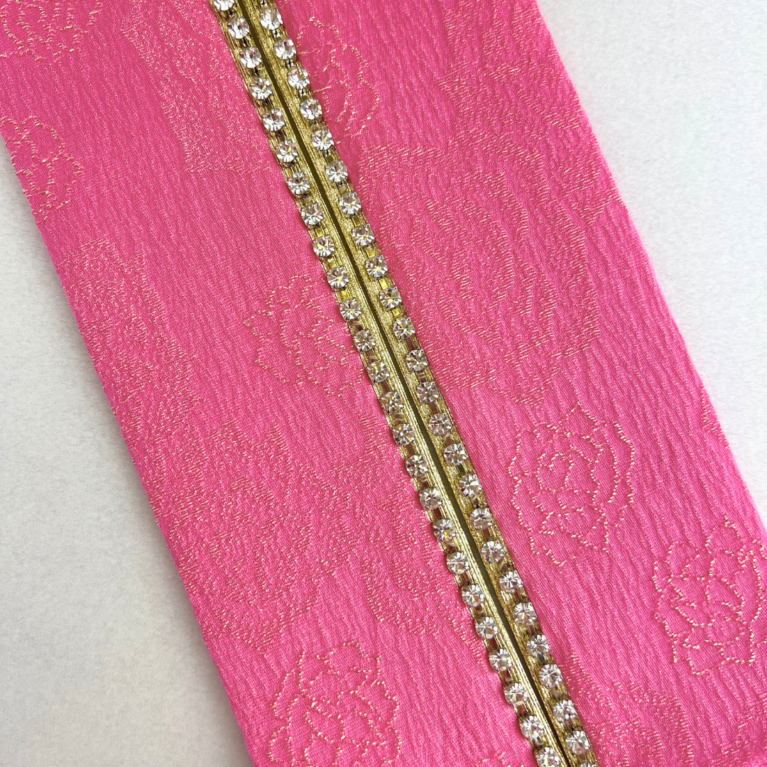 バラの模様やラメがキラキラして、お顔周りが華やかに!ラインストーンも付いているので豪華な印象に。