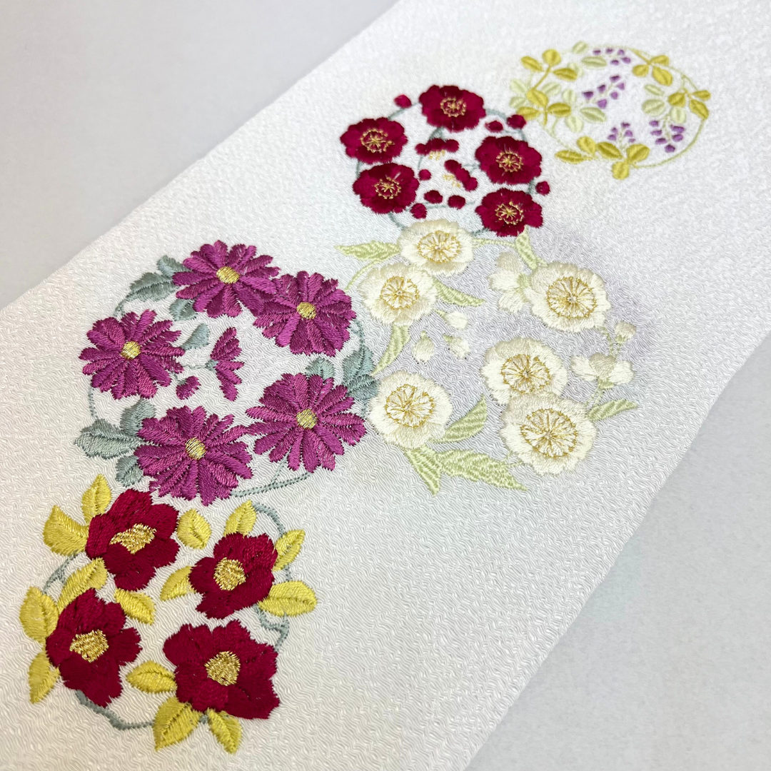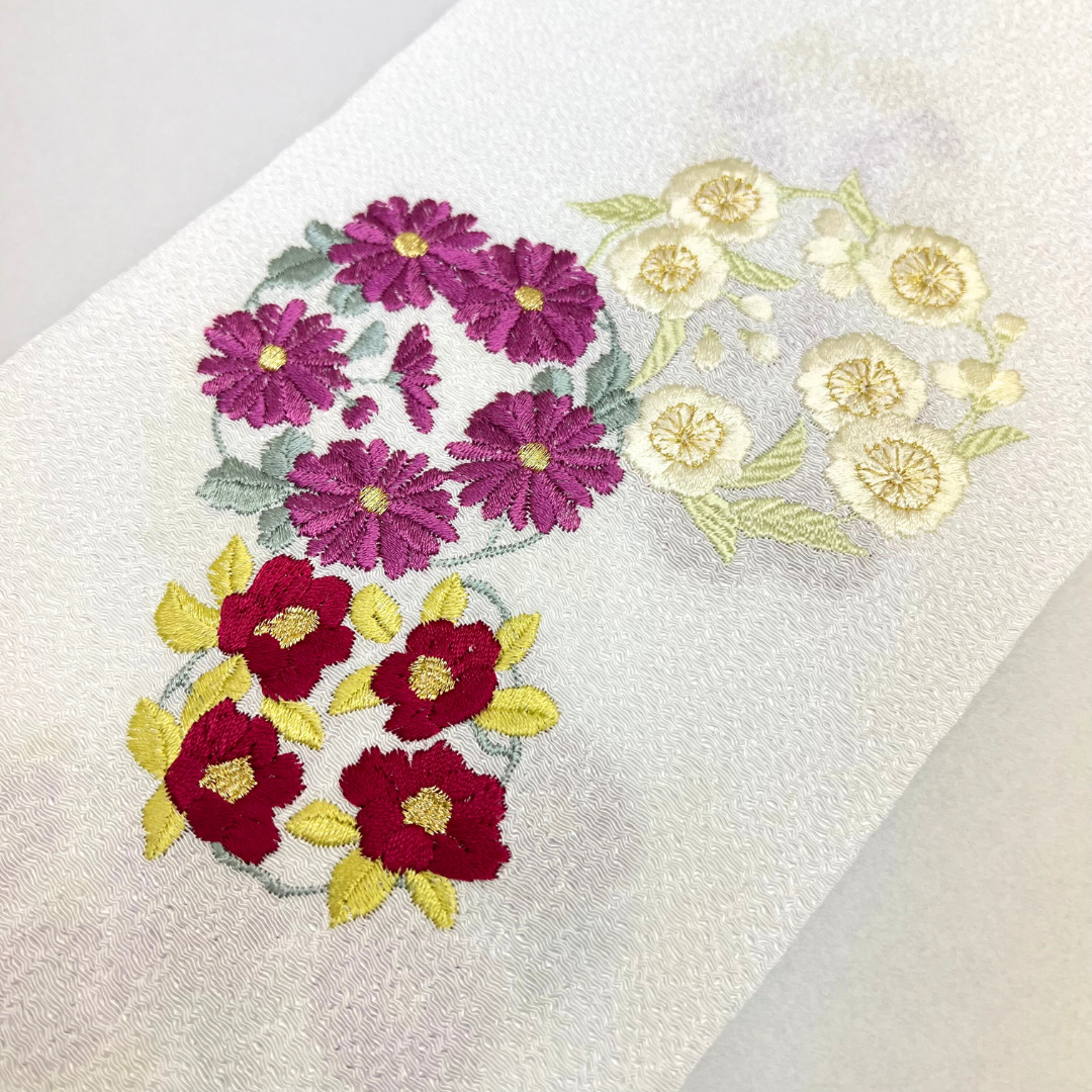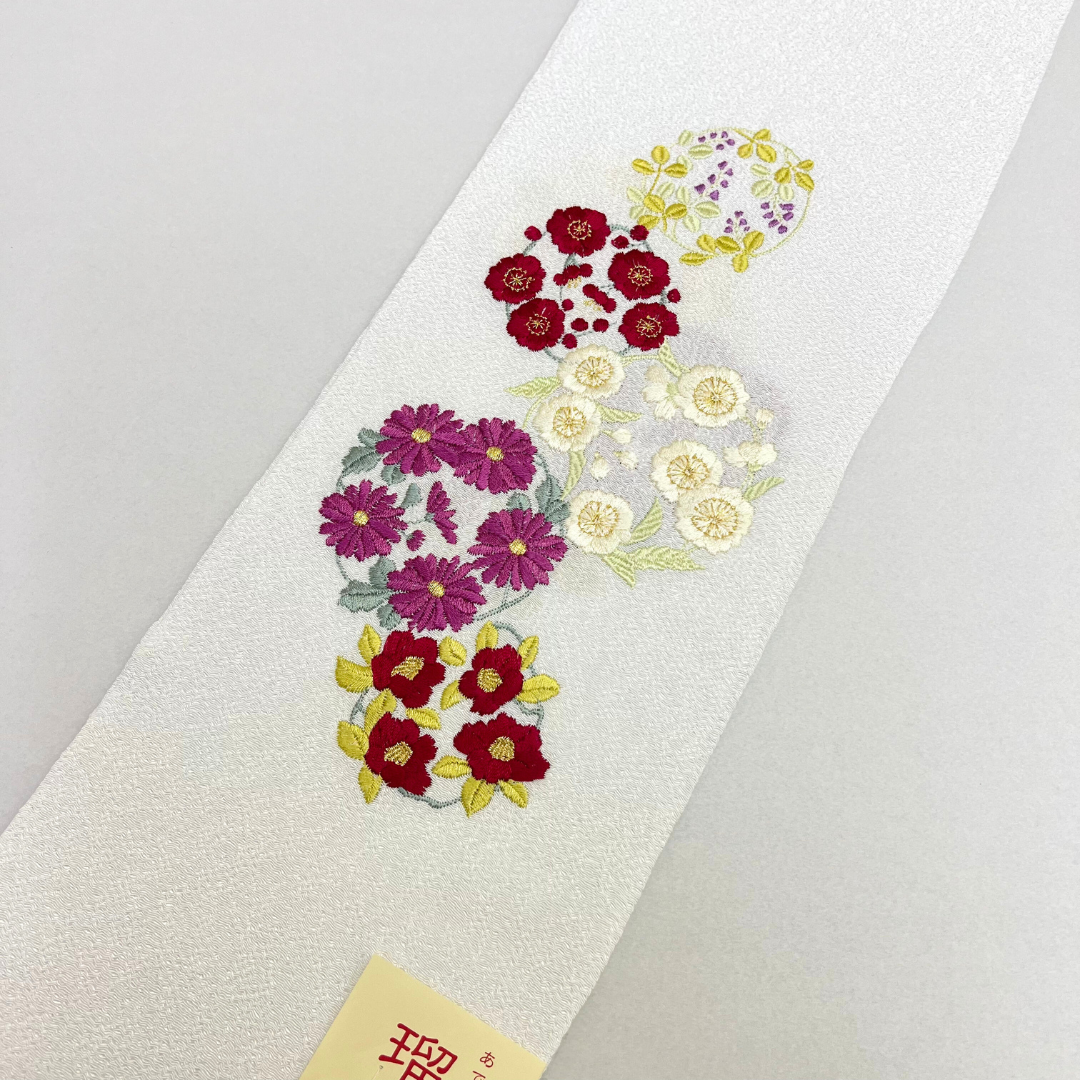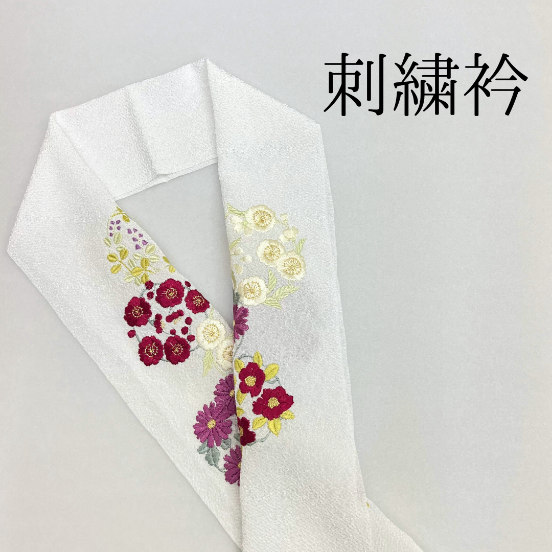 鮮やかな色の花雪輪の刺繍でお顔周りが華やかに!幅広い着物コーデに合わせやすい、シンプルなデザインです。