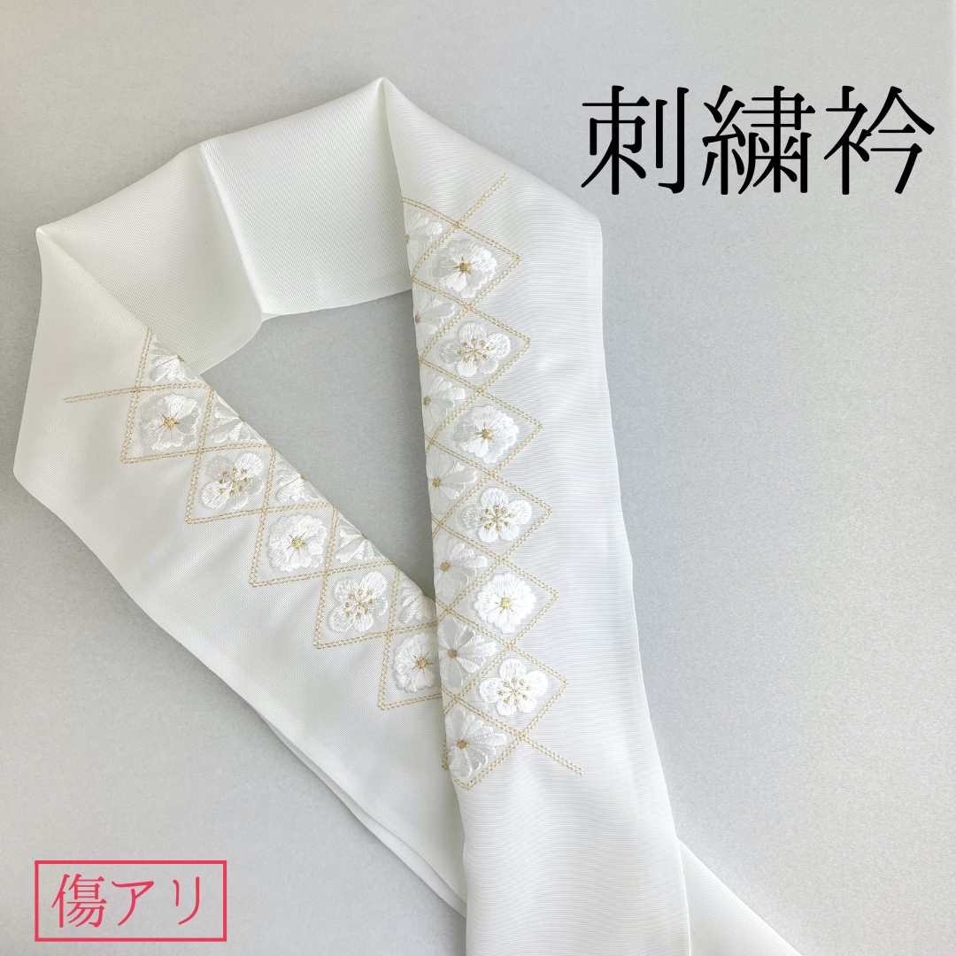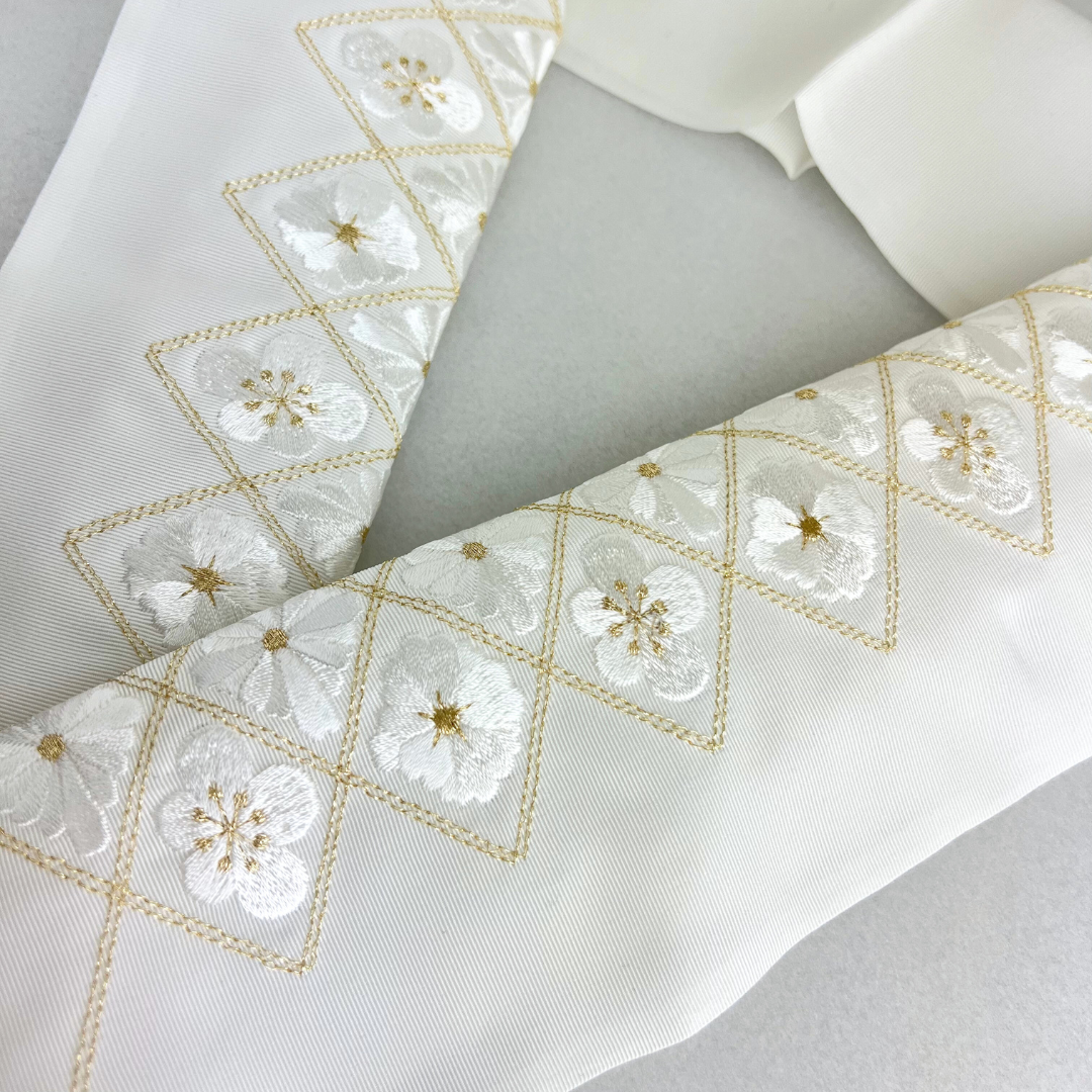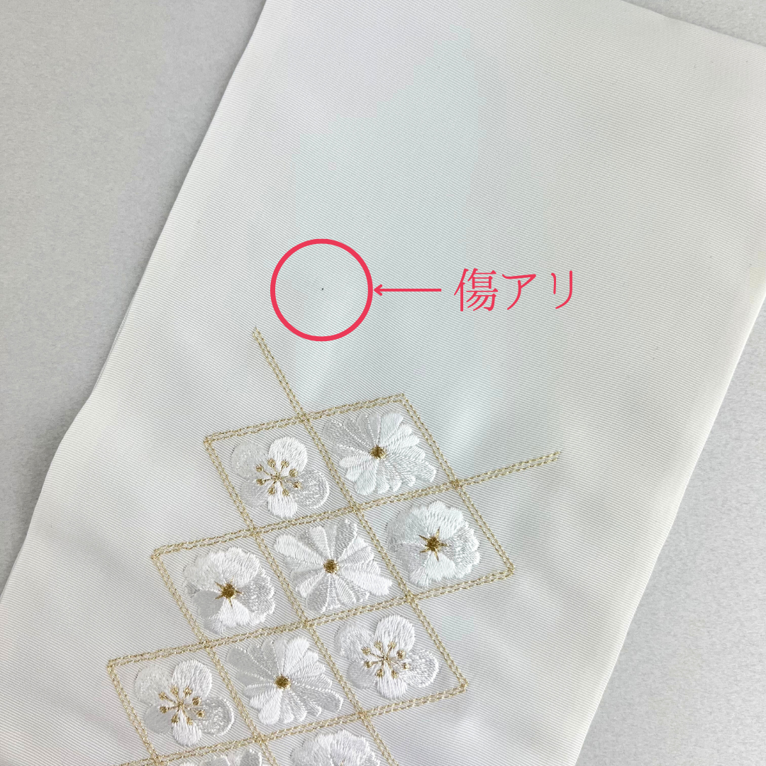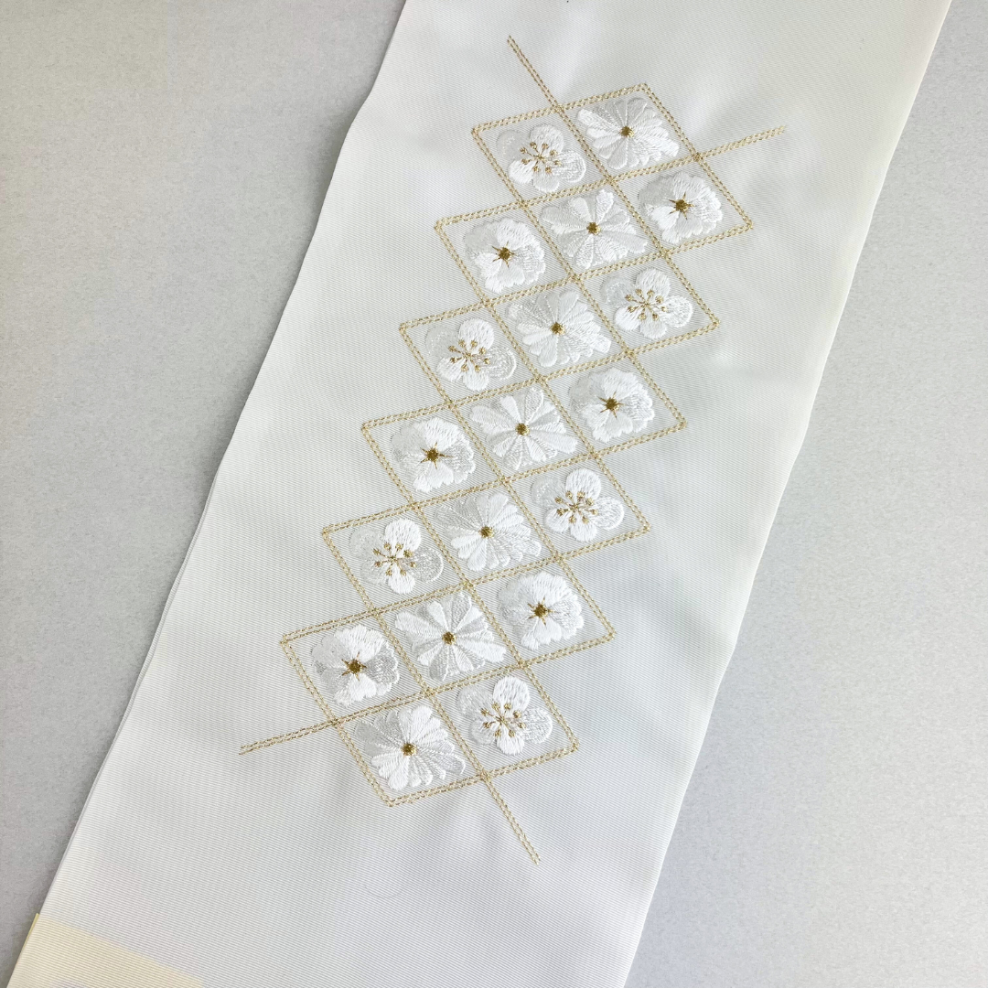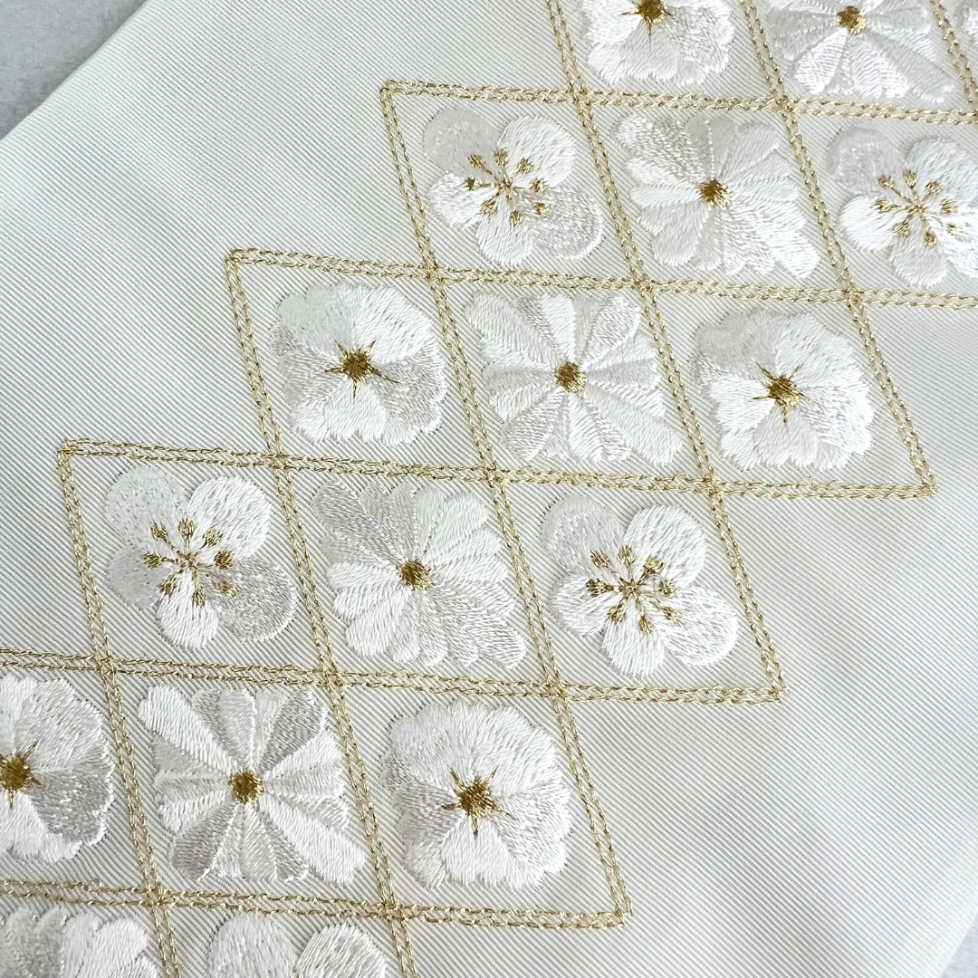 ゴールドと白色の菊と梅の刺繍が上品!幅広い着物コーデに合わせやすい、シンプルなデザインです。