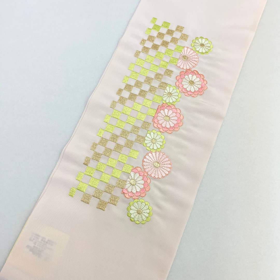 淡いピンクが上品で可愛らしい印象に。刺?がアシンメトリーになっているので、左右で違う柄をお楽しみいただけます!