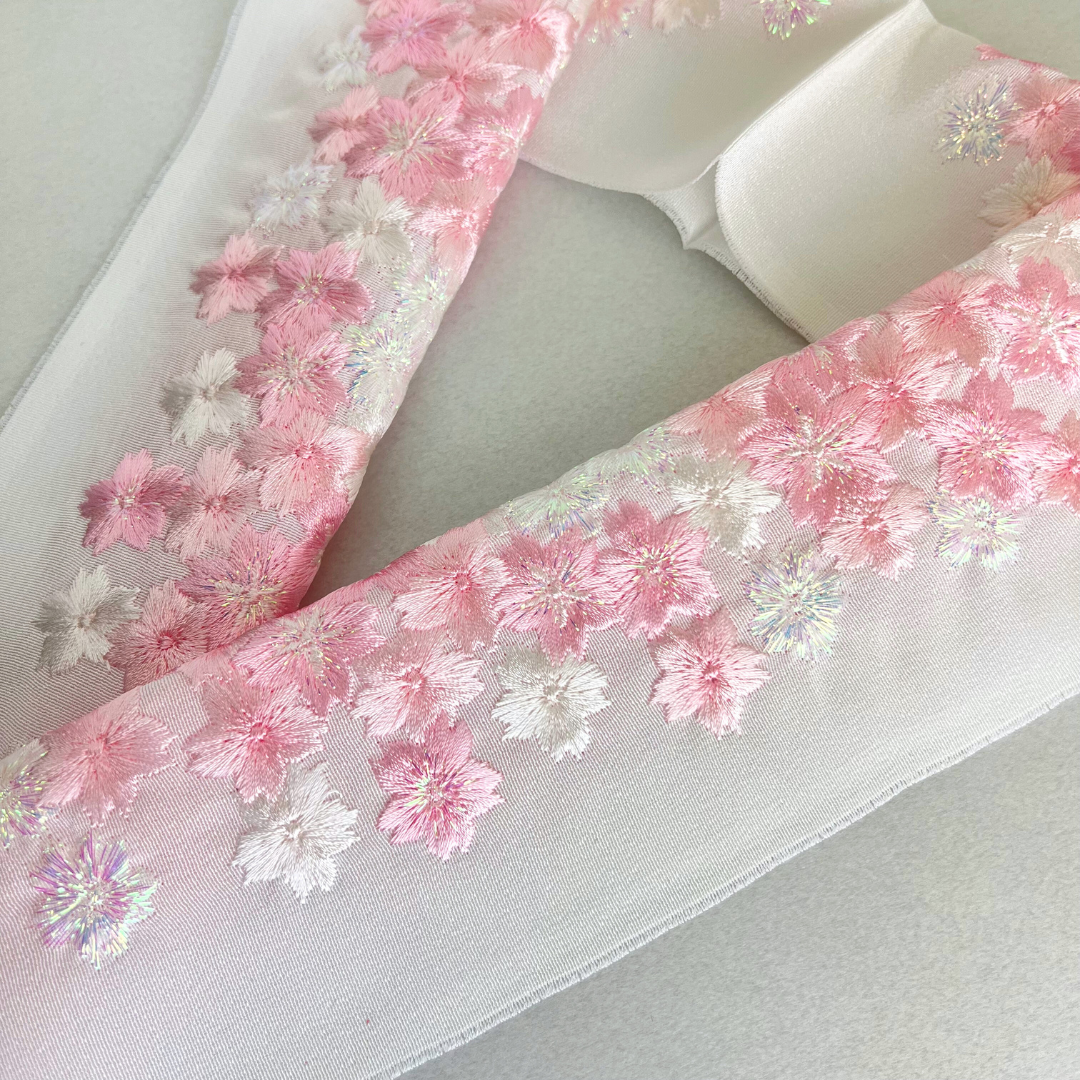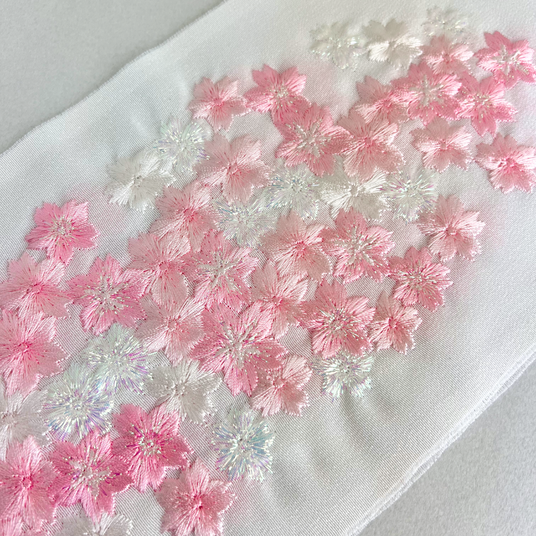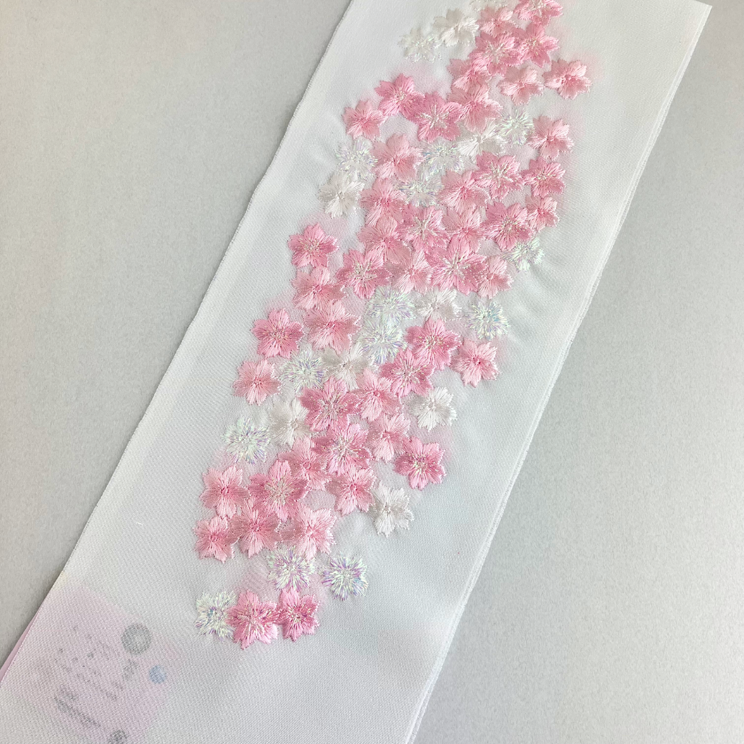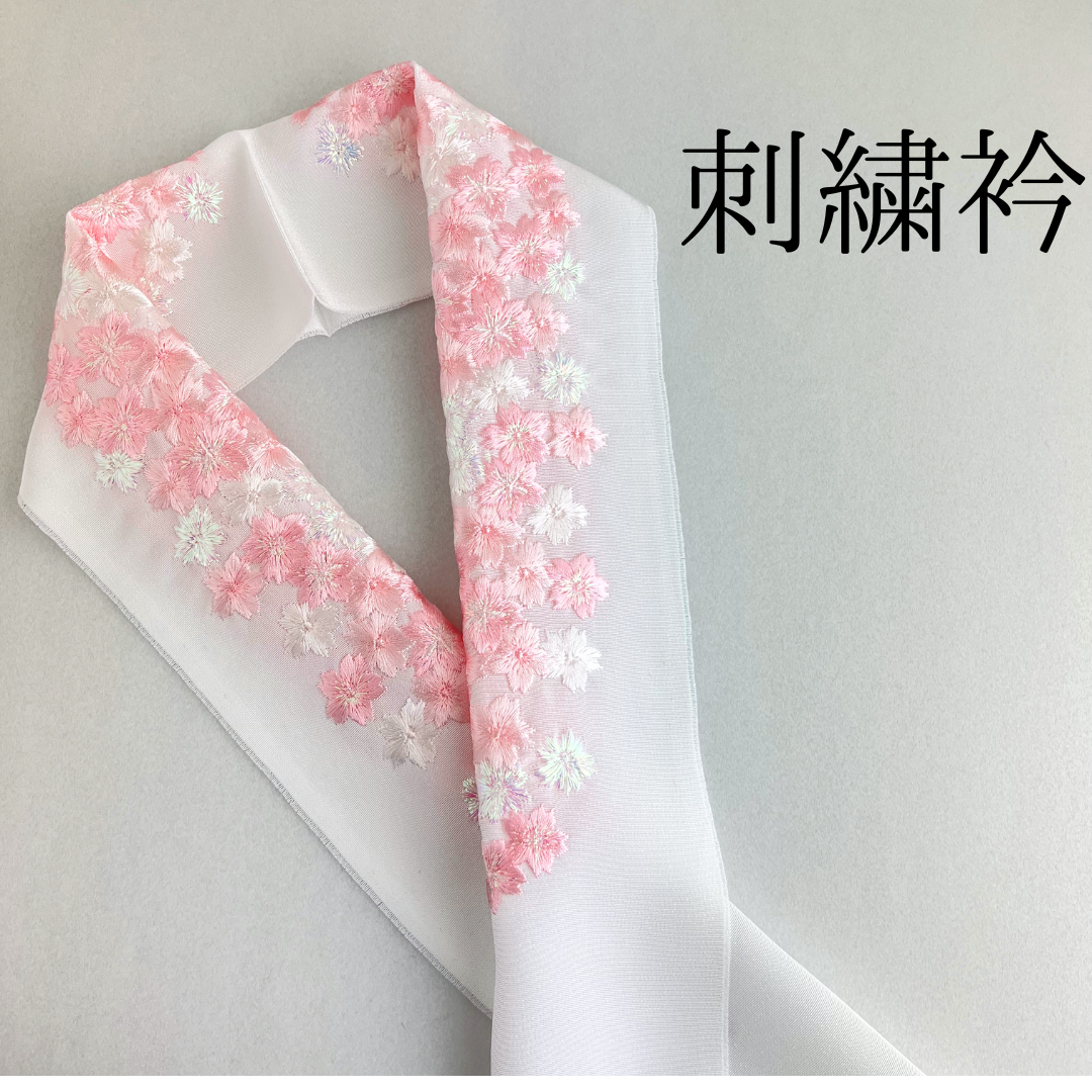 薄いピンクと白色の桜の刺繍が上品な刺?衿。幅広い着物コーデに合わせやすい、シンプルなデザイン!