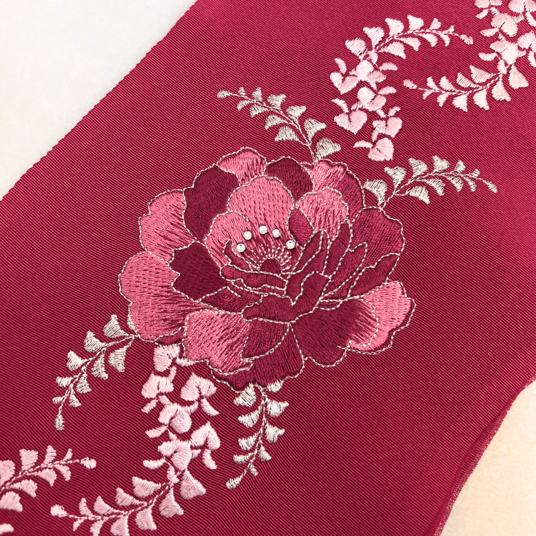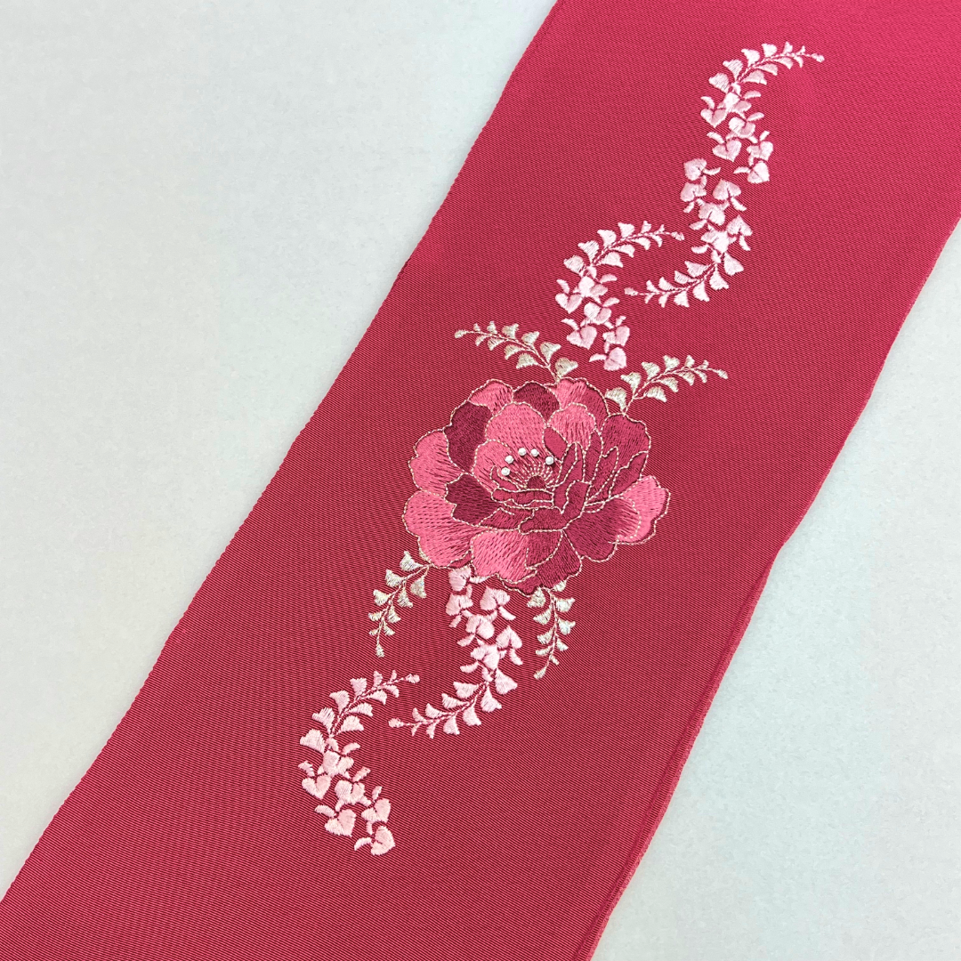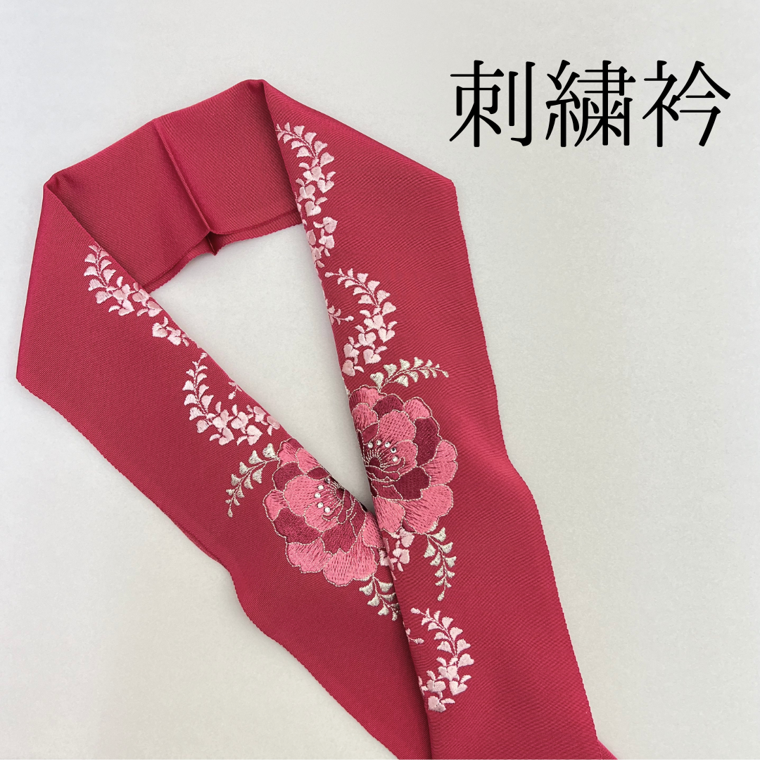 大きい牡丹が印象的な刺?衿です。ラインストーンが付いているので、お顔周りが華やかに!
