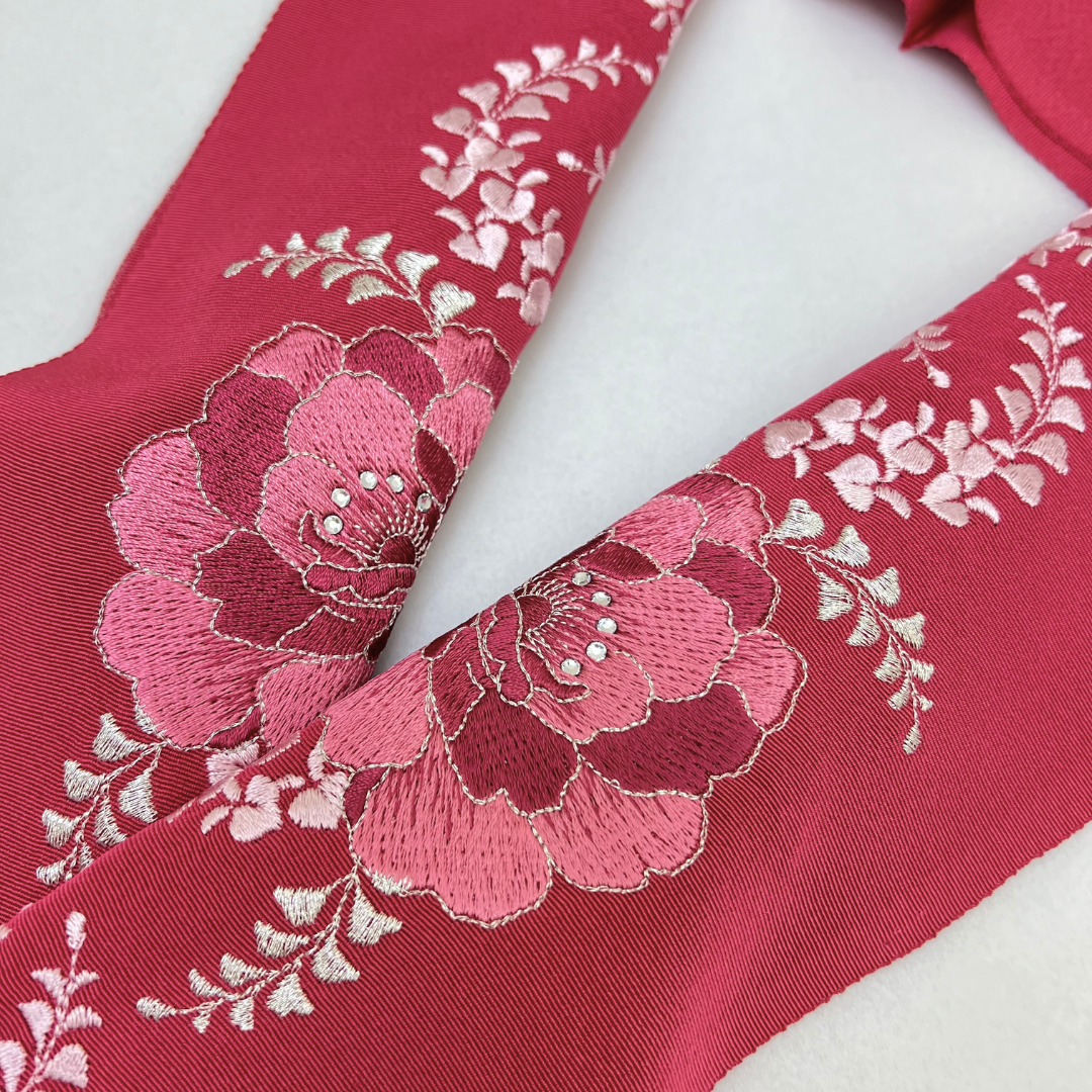 【商品情報】サイズ:縦約15.5cm×横約112cmカラー:赤 エンジ※商品写真は撮影状況、お客様の表示環境などにより実物と印象の異なる場合がございます 予めご了承ください生地:絹100%(お手入れはドライクリーニングでおねがいします。)商品の状態:新品 未使用※未使用ですが、撮影の為開封済みです