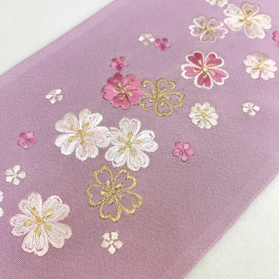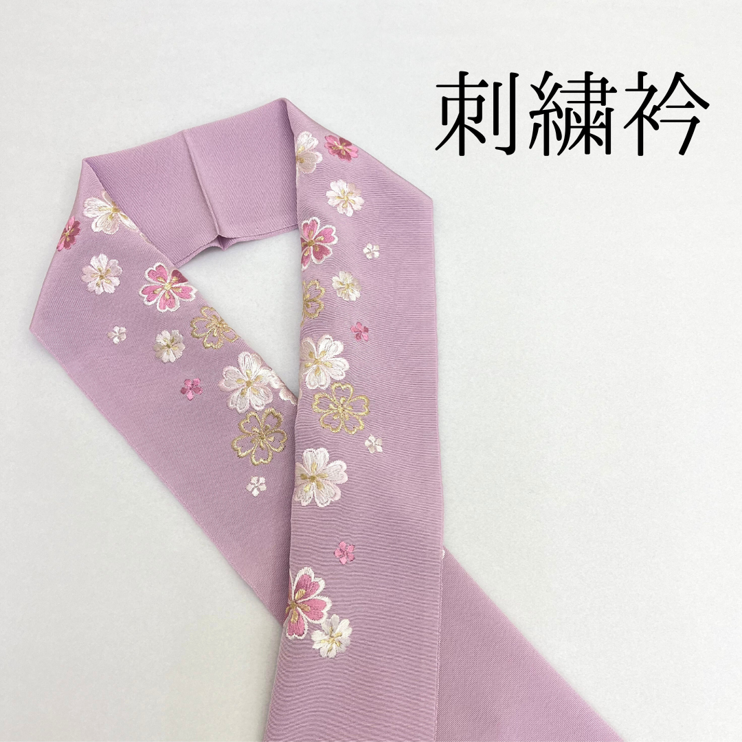 大小の桜の刺?が上品な刺?衿です。ラベンダー色の淡い色味が優しい雰囲気に。