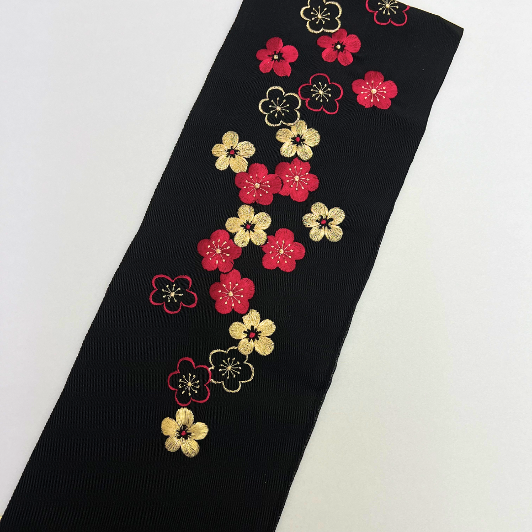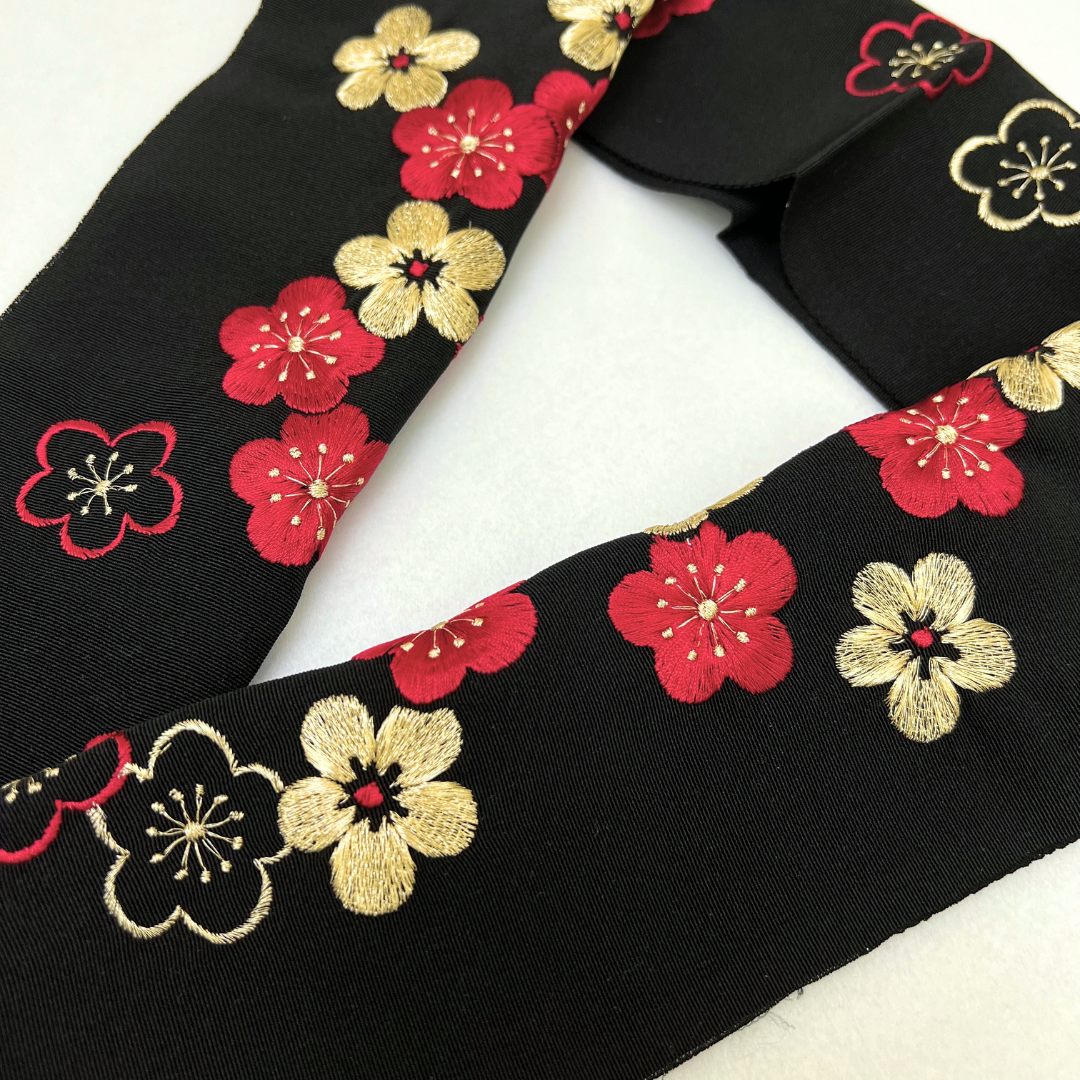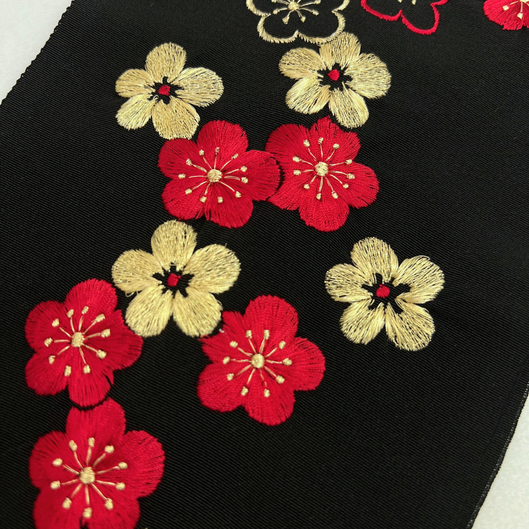 ゴールドと赤色の梅の刺繍が豪華!古典的な柄なので、大人っぽい雰囲気にも合います。
