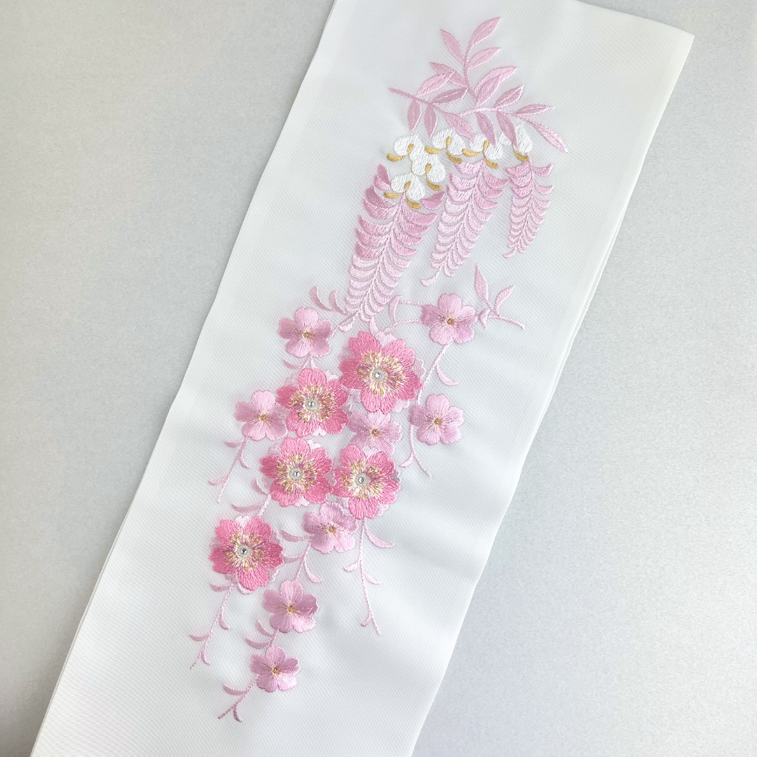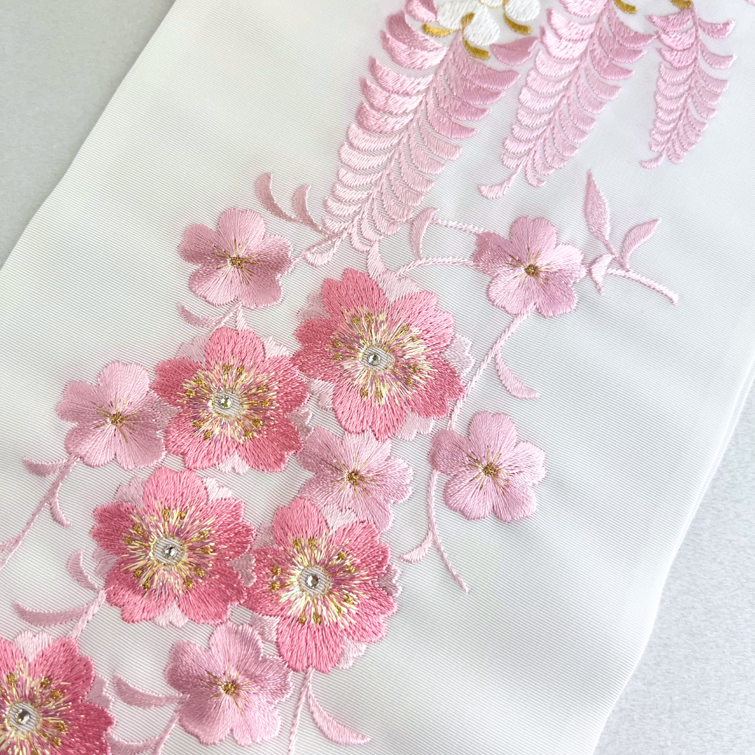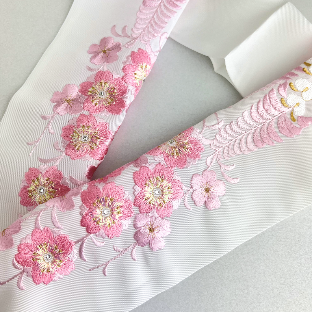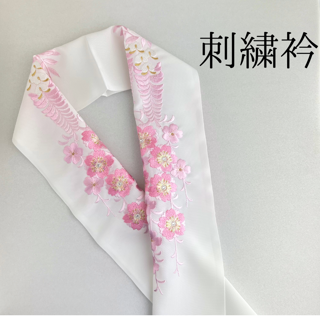 ピンクの桜の刺繍が上品な刺?衿です。幅広い着物コーデに合わせやすい、シンプルなデザイン!