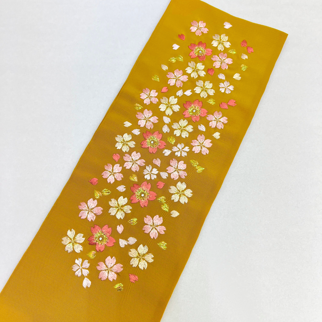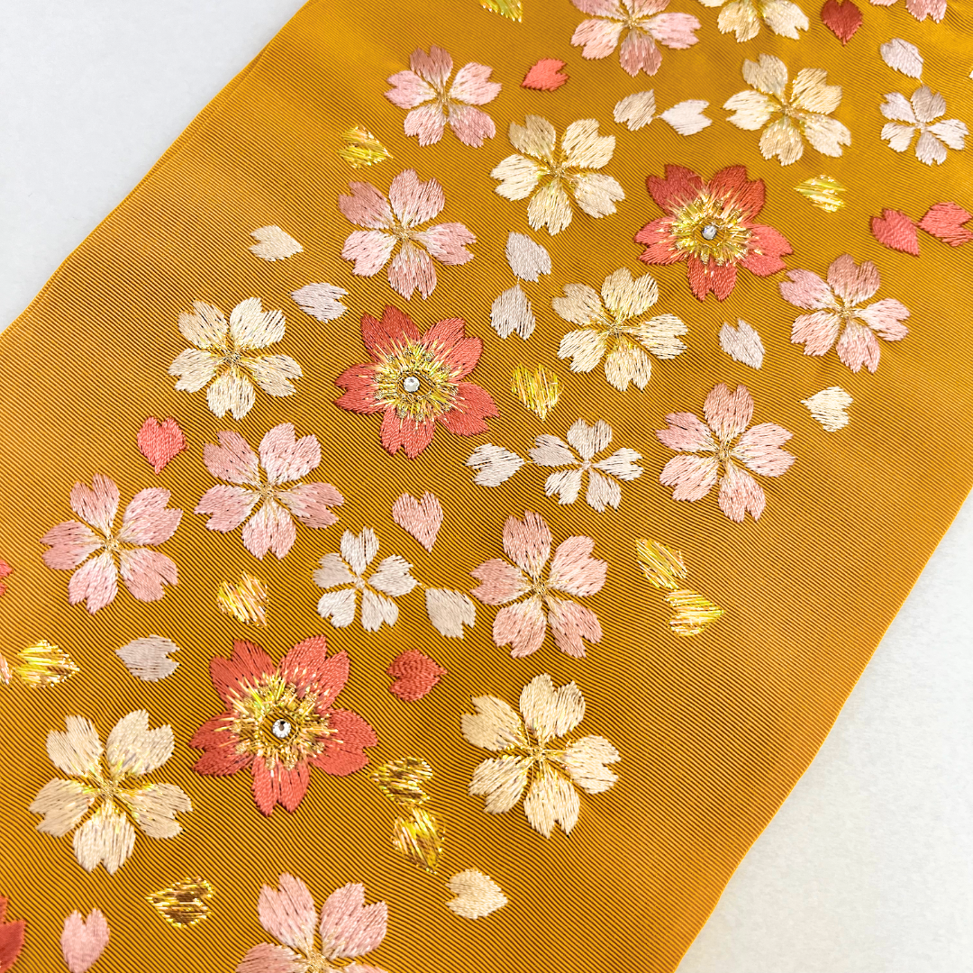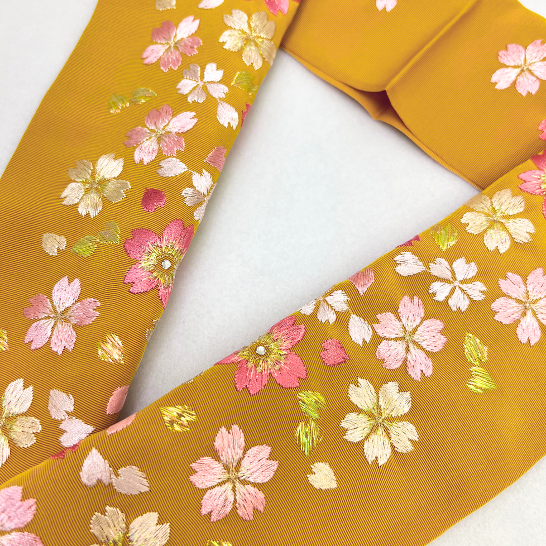 たくさんの桜刺繍がお顔周りを華やかに。ストーン加工を施してあるので、豪華さアップ!