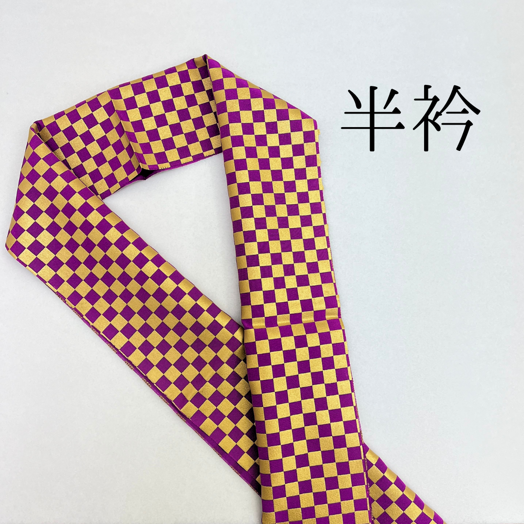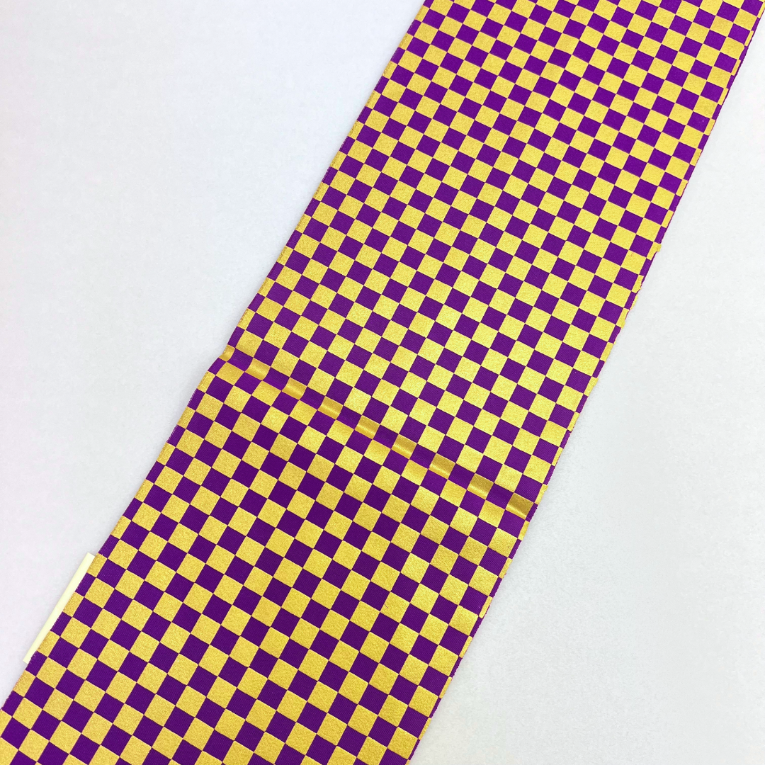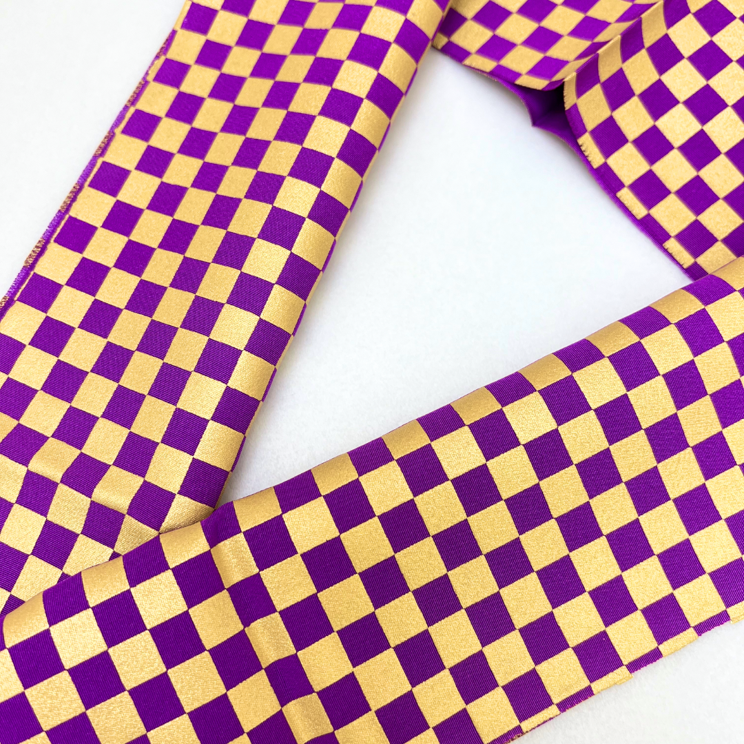ゴールドとター紫の市松模様で個性的な雰囲気に!幅広い着物コーデに合わせやすい、シンプルなデザインです。