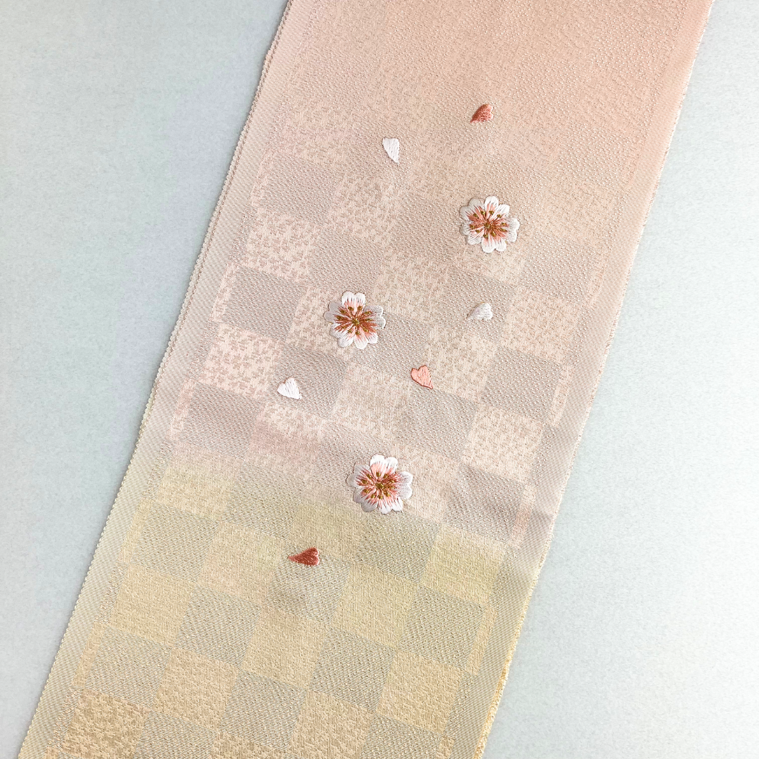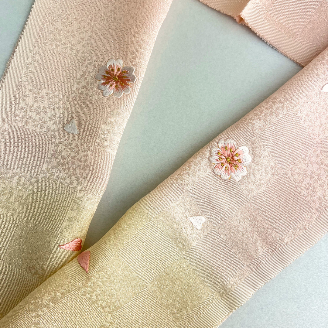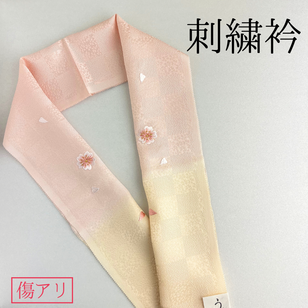 淡いピンクとクリーム色のグラデーションが綺麗な刺?衿です。幅広い着物コーデに合わせやすい、シンプルなデザイン!
