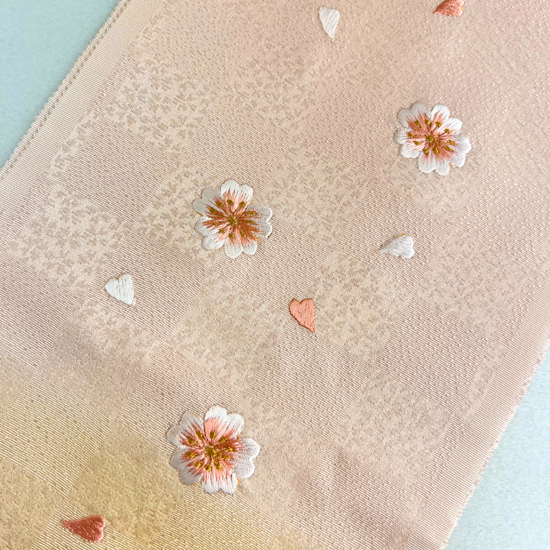 【商品情報】サイズ:縦約16.5cm×横約116cmカラー:淡いピンク クリーム色※商品写真は撮影状況、お客様の表示環境などにより実物と印象の異なる場合がございます 予めご了承ください生地:絹100%(お手入れはドライクリーニングでおねがいします。)商品の状態:新品 未使用※未使用ですが、撮影の為開封済みです