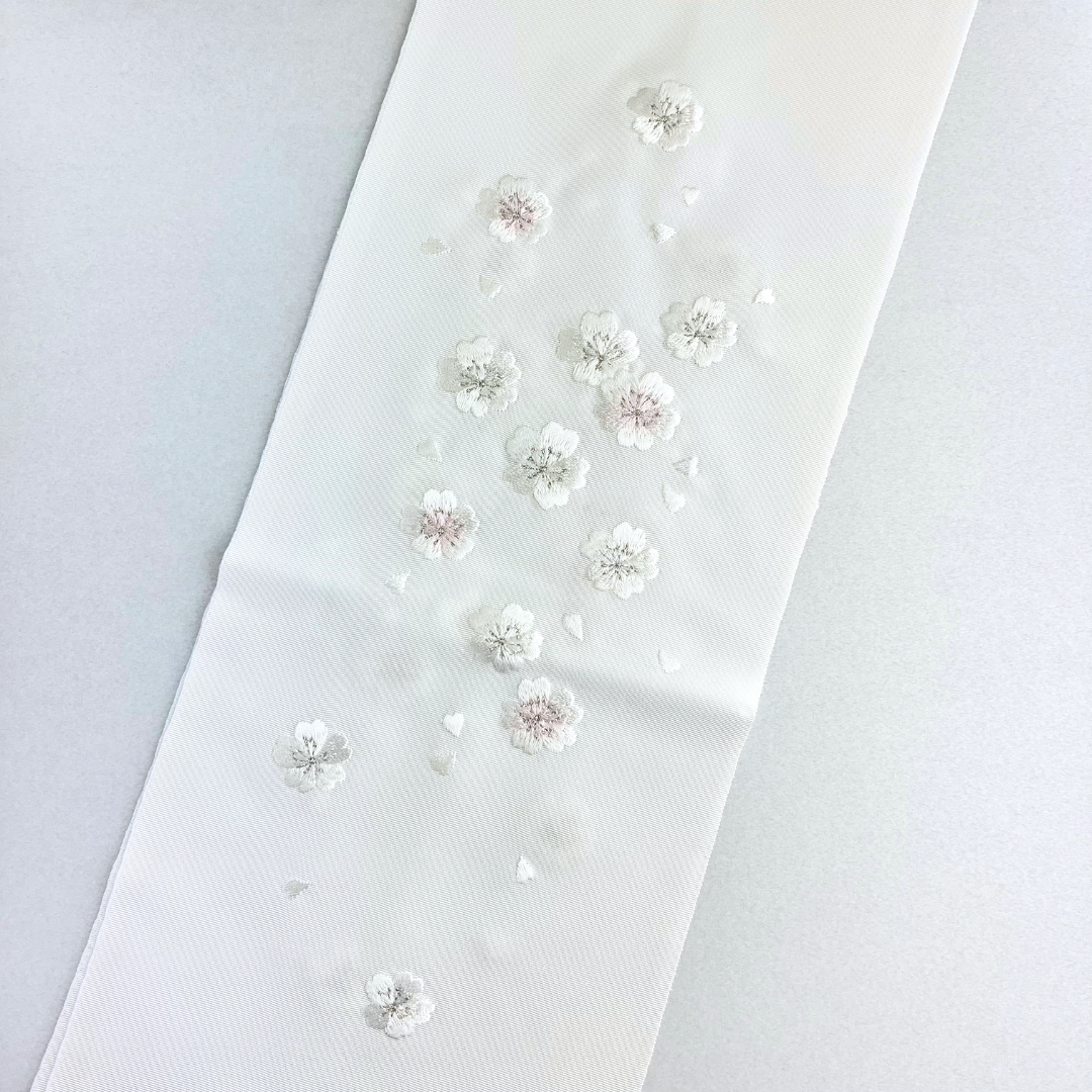 【商品情報】サイズ:縦約16cm×横約113cmカラー:白 薄ピンク※商品写真は撮影状況、お客様の表示環境などにより実物と印象の異なる場合がございます 予めご了承ください生地:絹100%(お手入れはドライクリーニングでおねがいします。)商品の状態:新品 未使用※未使用ですが、撮影の為開封済みです
