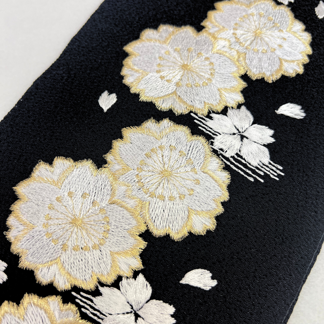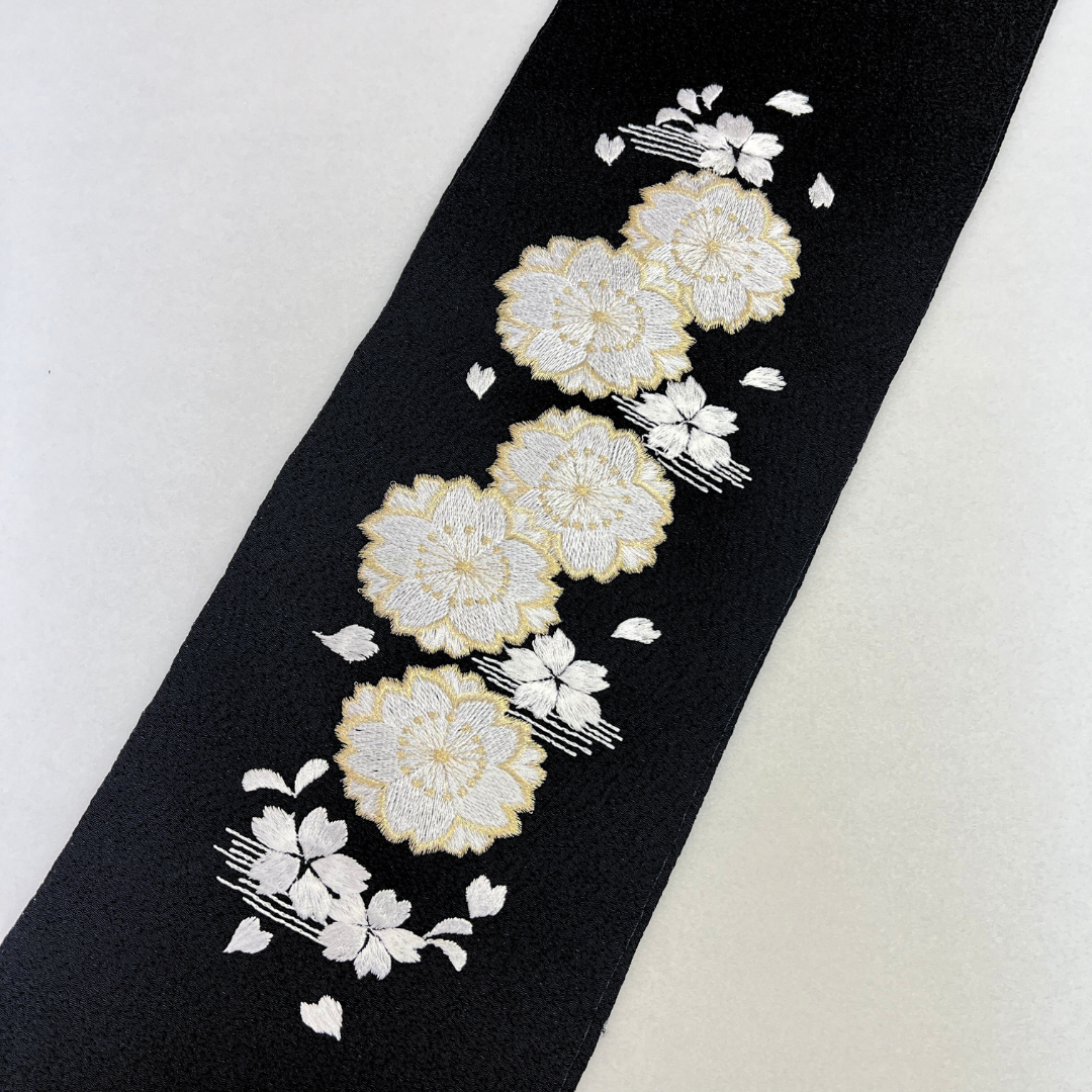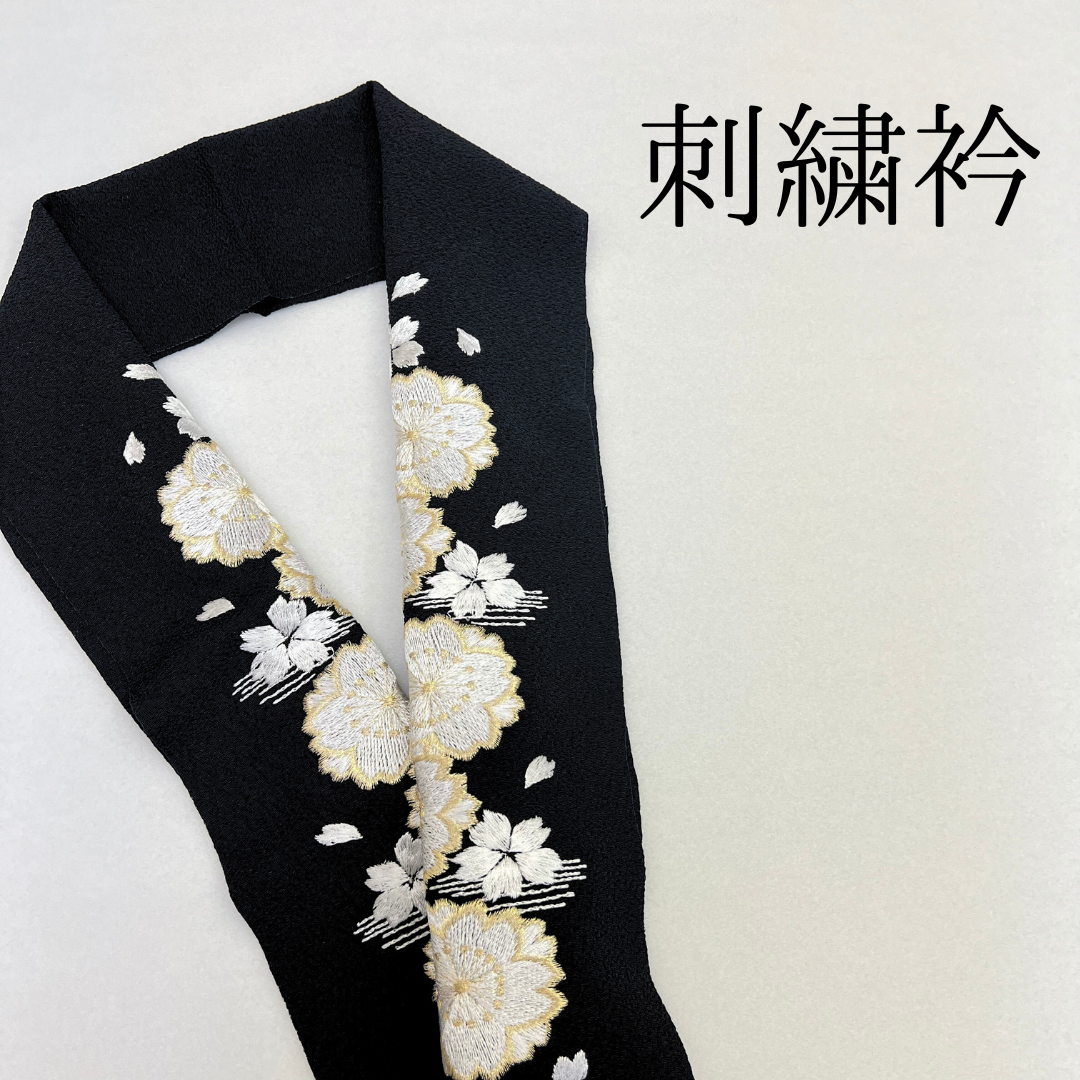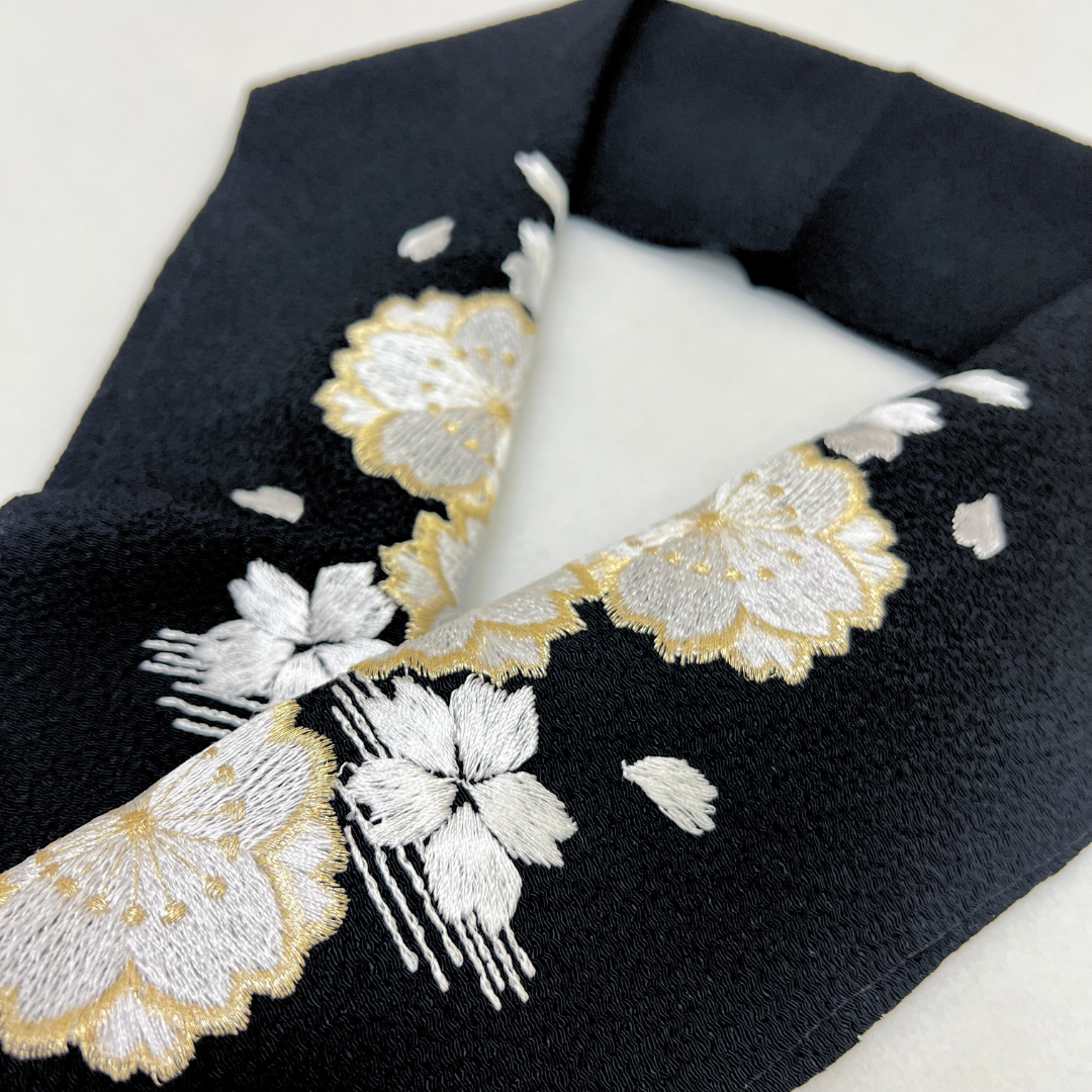 ゴールドと白色の桜の刺繍が上品な刺?衿です。ブライダルにもご使用頂けるよう、寸法が長めになっております。