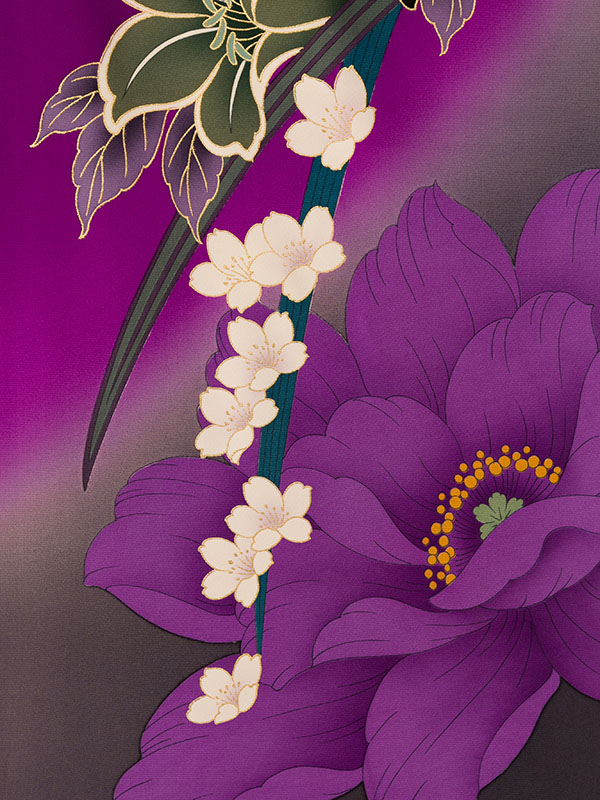 ■着物: 紫地 牡丹