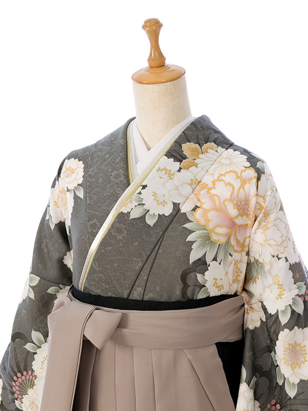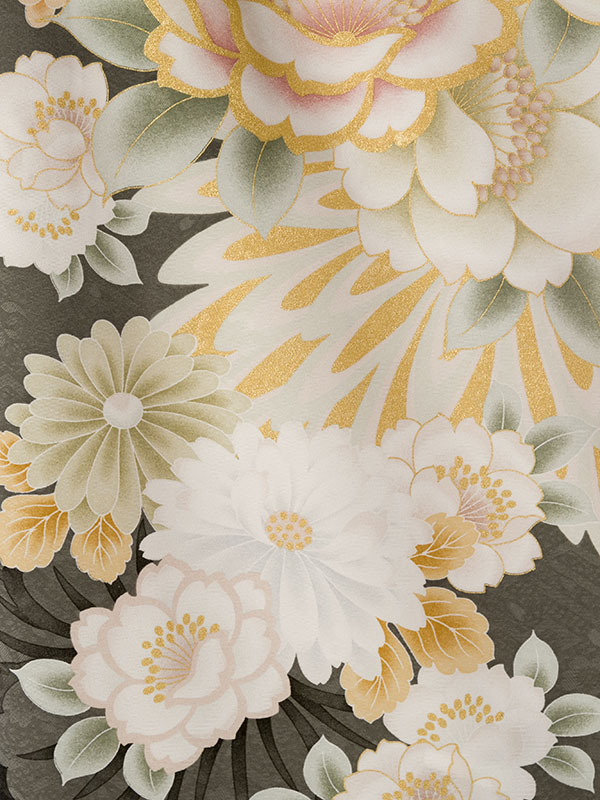 ■着物: くすみグリーン 牡丹 桜に宝尽くし