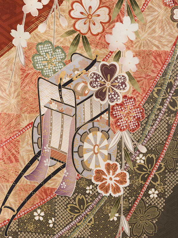■着物: 赤茶/金茶ぼかし 御所車 桜