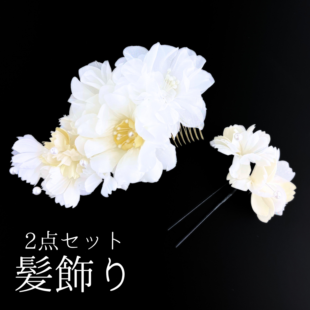 パールビーズがお花の中心に施されている豪華な髪飾りです。