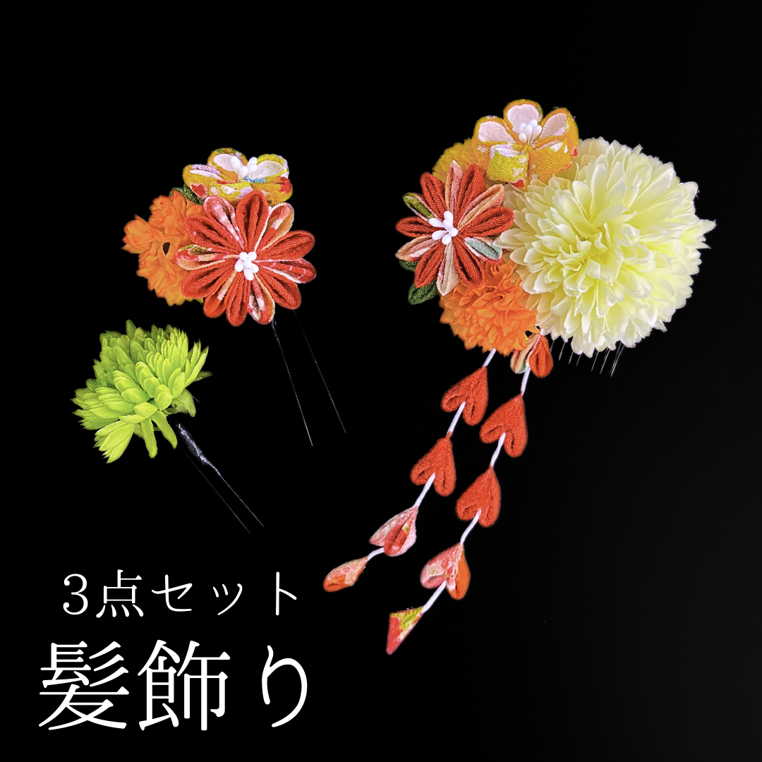 ちりめん素材のつまみ細工のお花が、色鮮やかで華やかな髪飾りです。