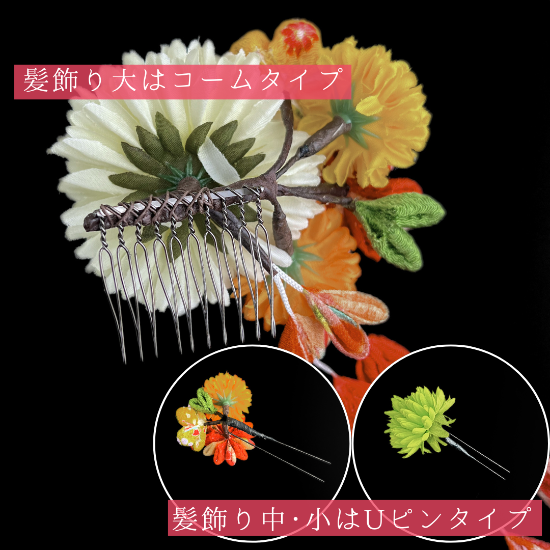髪飾り小:縦約5cm×横約5cm×高さ約3cm(Uピン仕様)