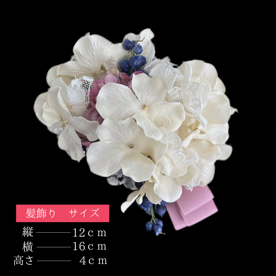 トレンドのくすみカラーが大人っぽく可愛らしい髪飾りです。