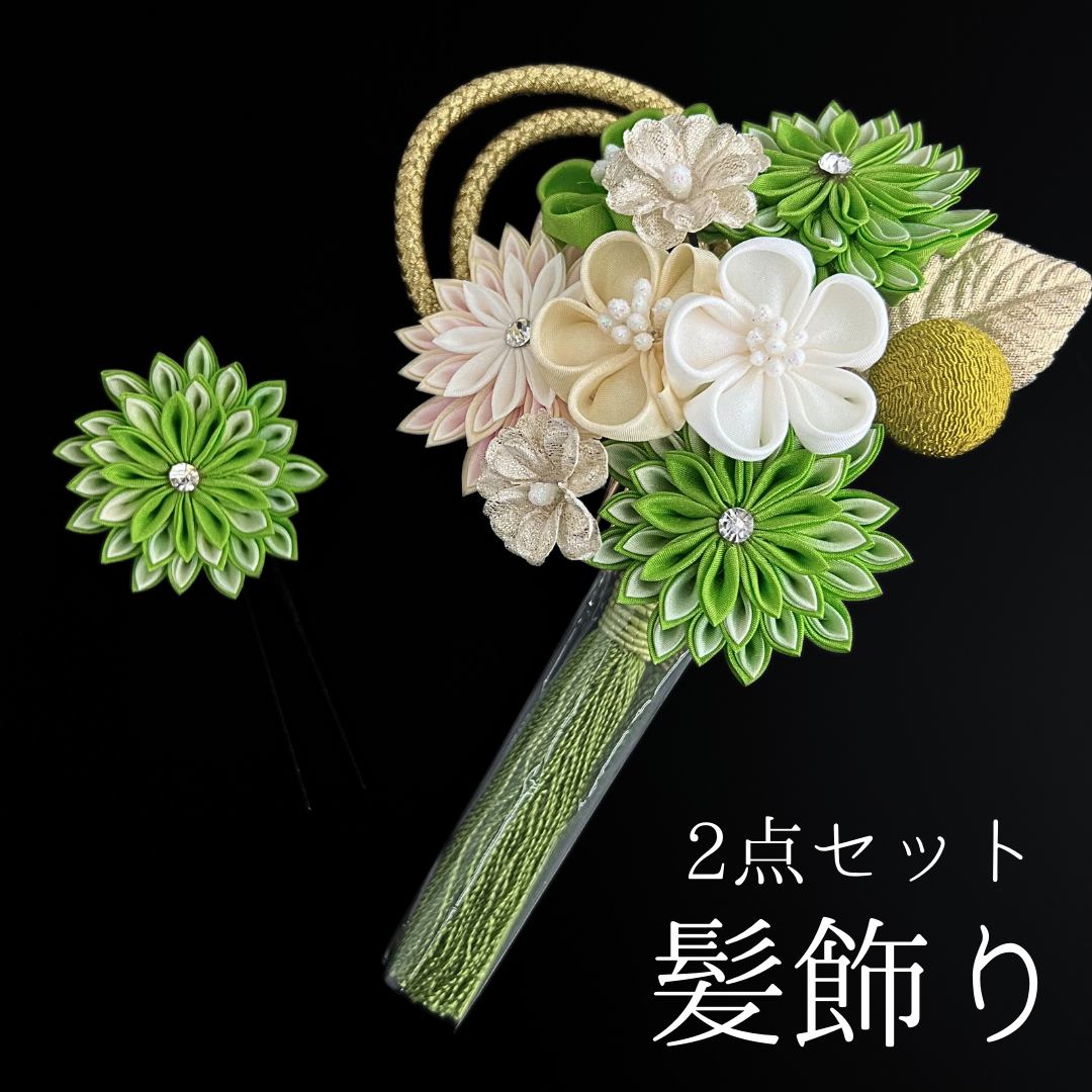 幾重にも重なる美しいつまみ細工のお花が華やかな雰囲気の髪飾りです。
