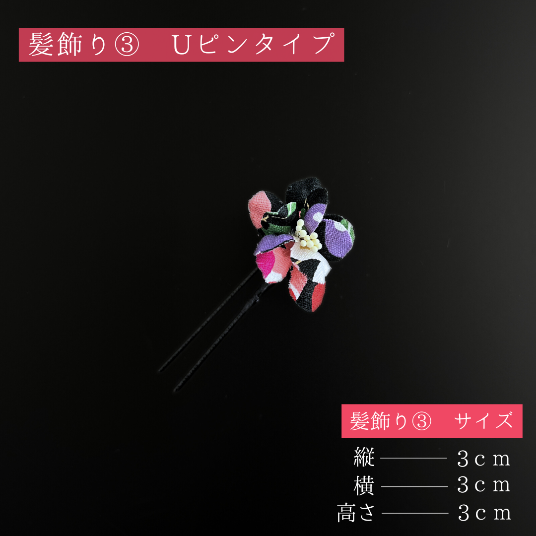 髪飾り③(Uピン式):縦約3cm×横約3cm×高さ約3cm