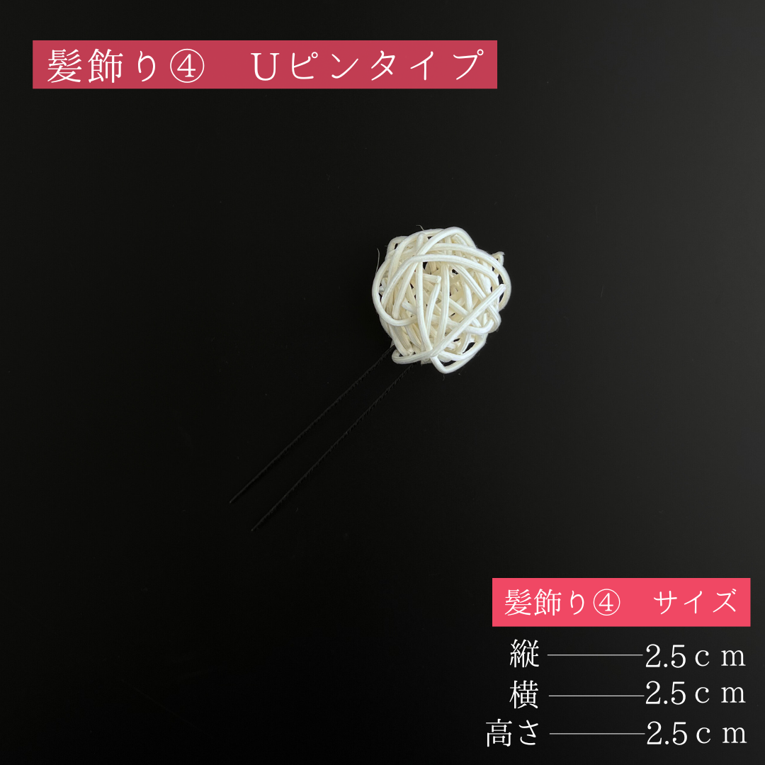 髪飾り④(Uピン式):縦約2.5cm×横約2.5cm×高さ約2.5cm
