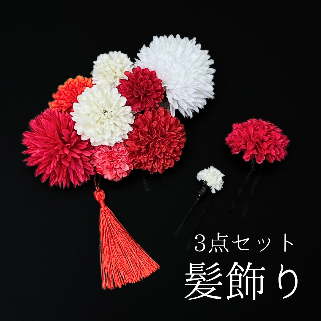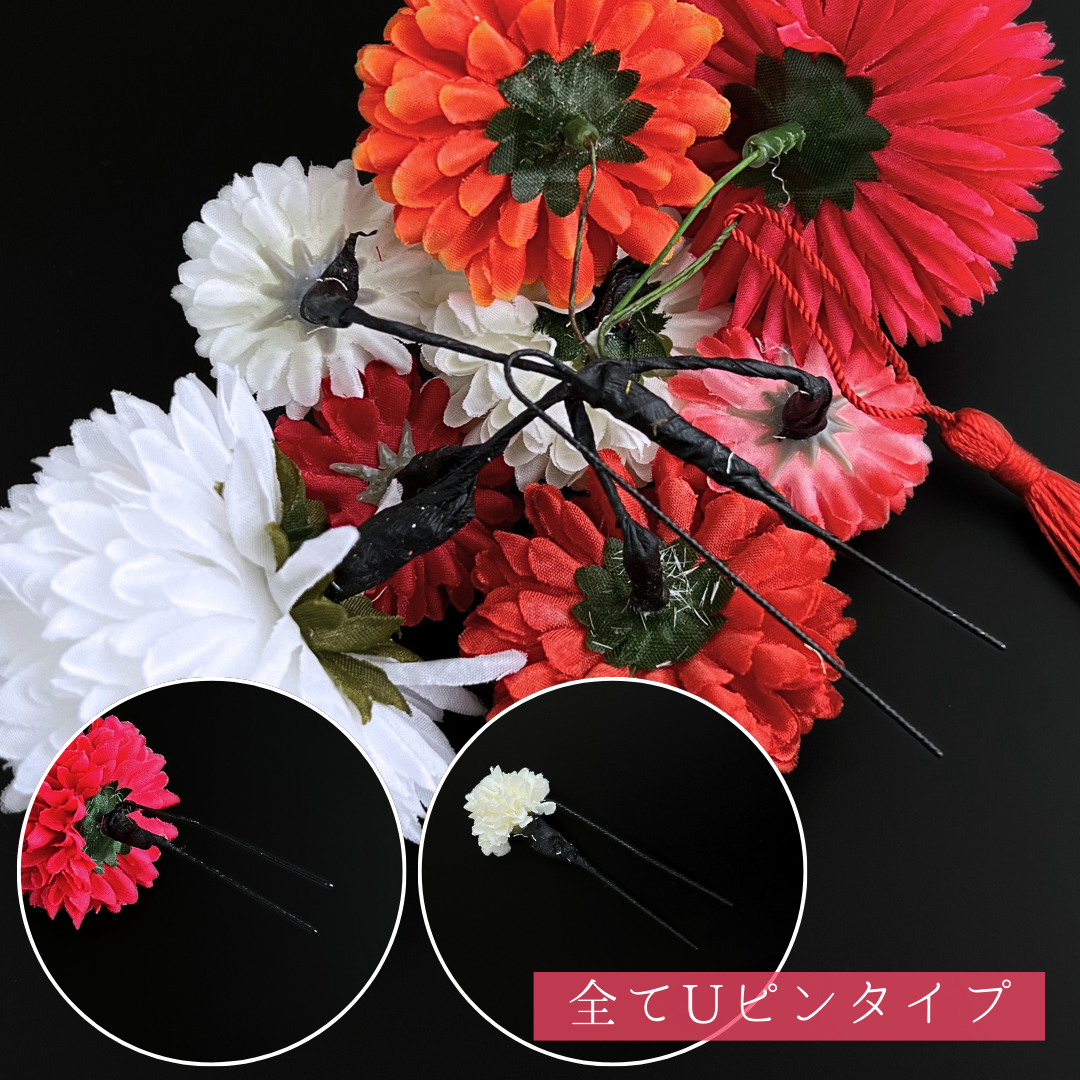 菊とピンポンマムをたくさん合わせたブーケのような髪飾り!