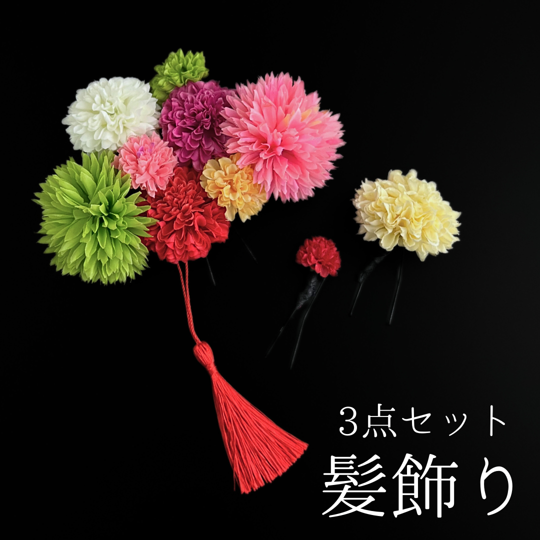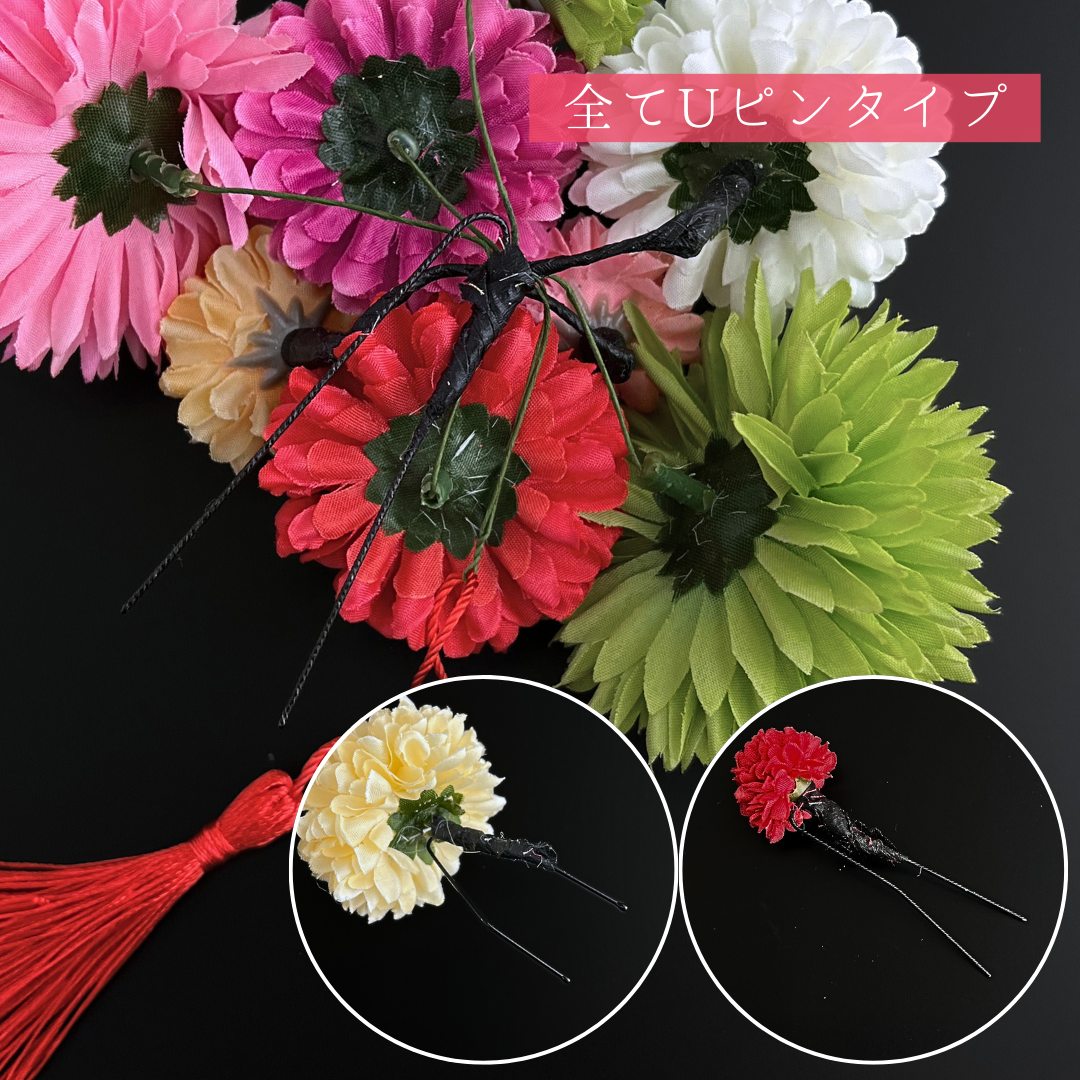 菊とピンポンマムをたくさん合わせたブーケのような髪飾り!