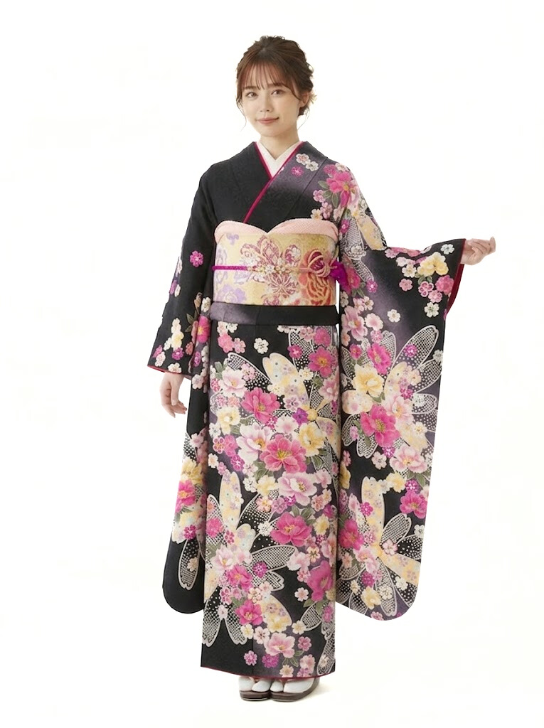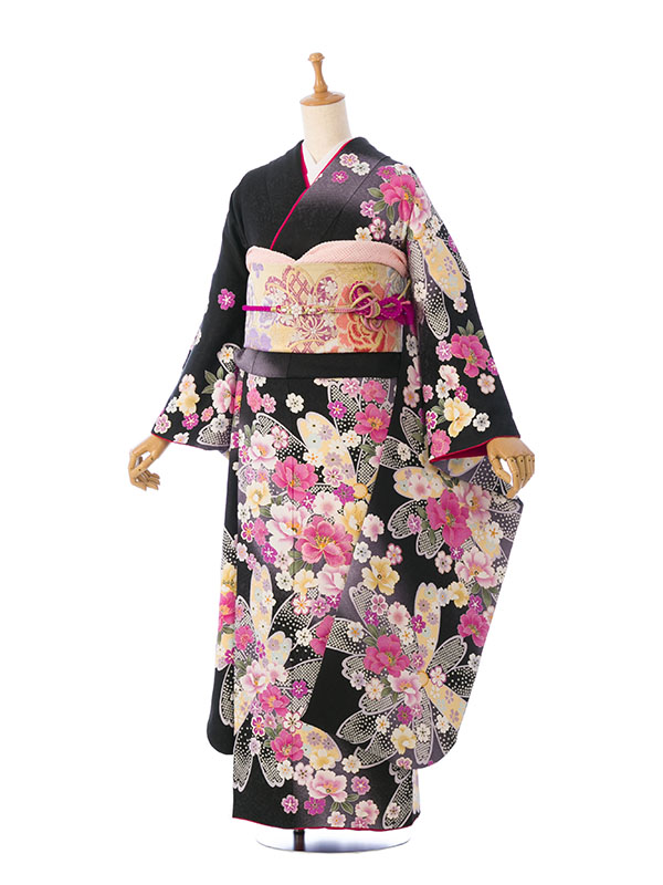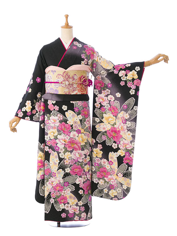 振袖|スモールサイズ|黒系|対応身長:150-160cm|サイズ:7号-13号|6S355