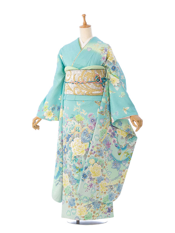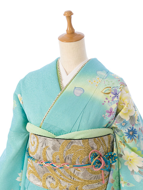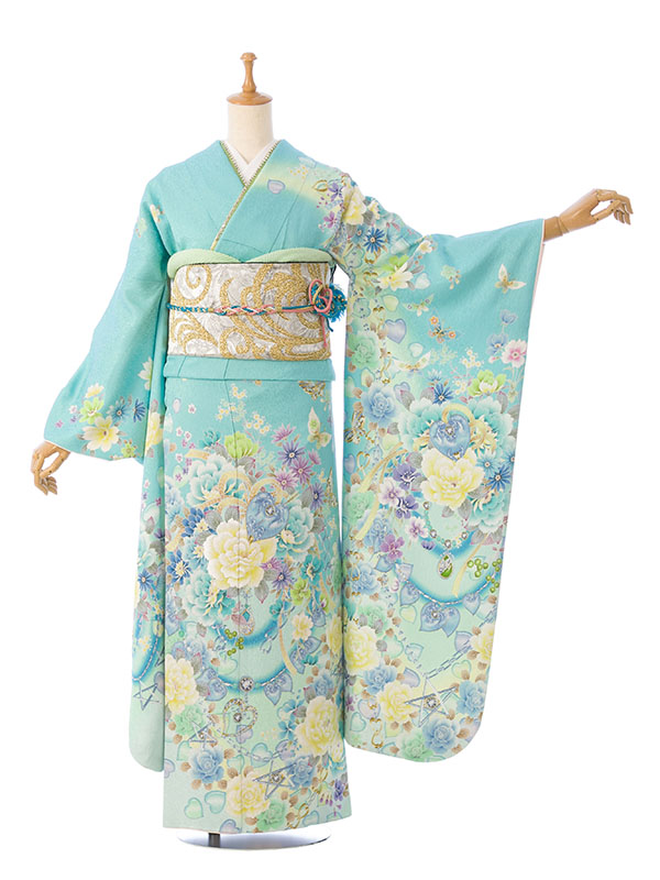 振袖|水色系|ハート|対応身長:158-168cm|サイズ:7号-13号|6S942
