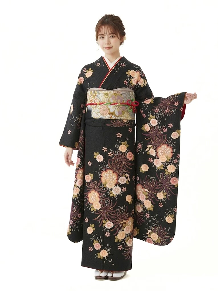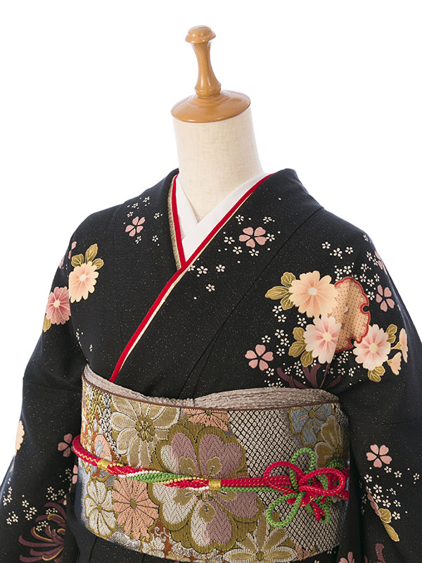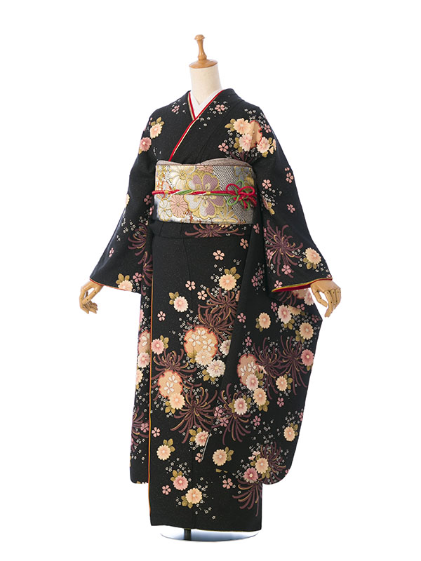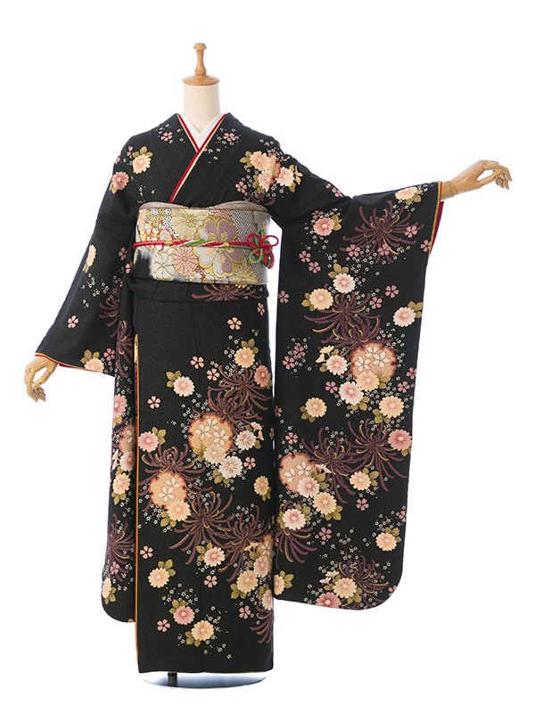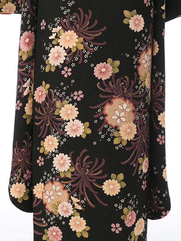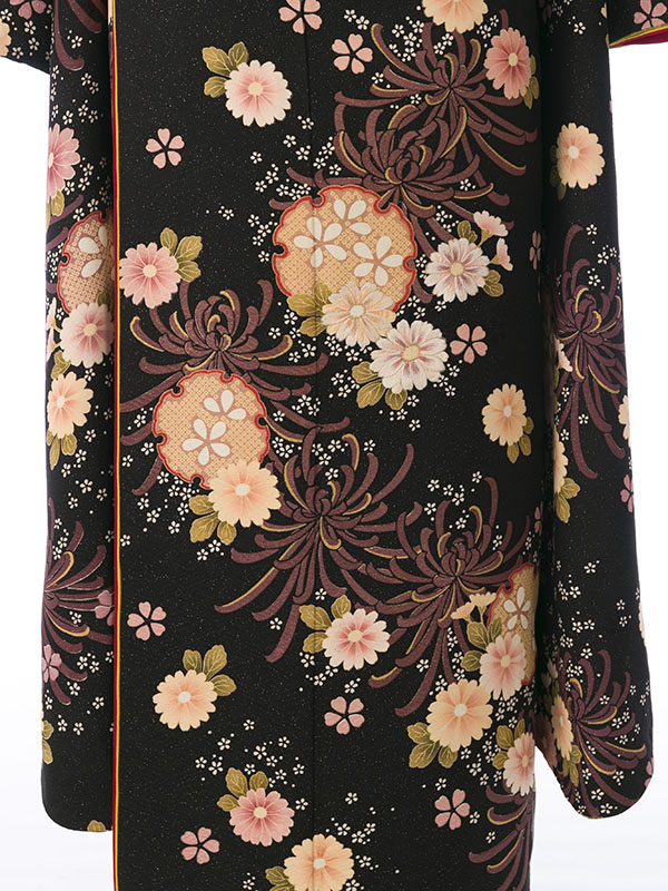 振袖|黒系|雪輪に菊|対応身長:158-168cm|サイズ:7号-13号|5S112