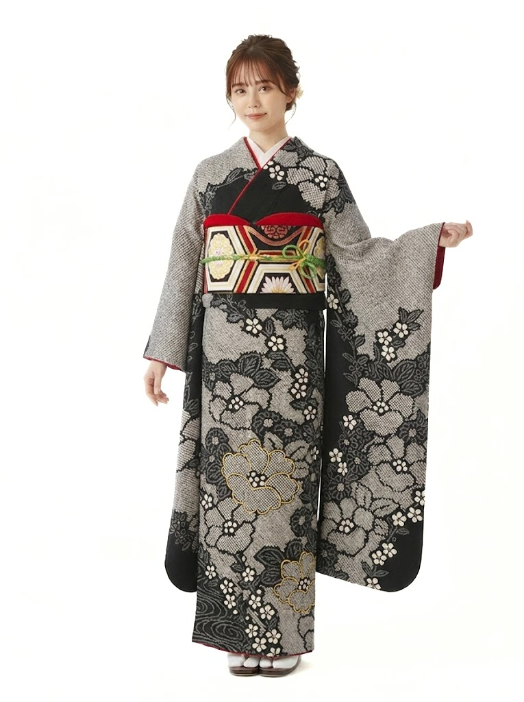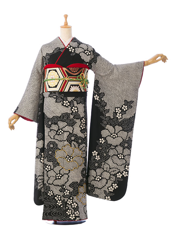 振袖|黒系|絞り|対応身長:153-165cm|サイズ:7号-13号|4S452