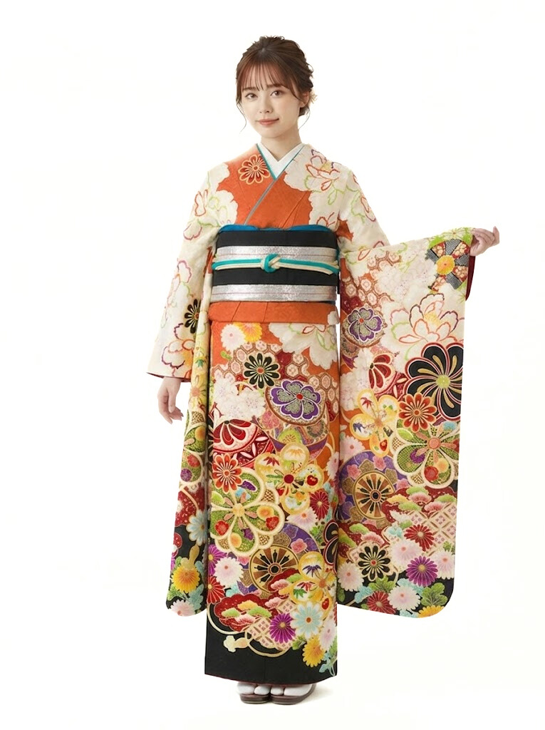 振袖|中村里砂|オレンジ系|対応身長:153-165cm|サイズ:7号-13号|1S3208