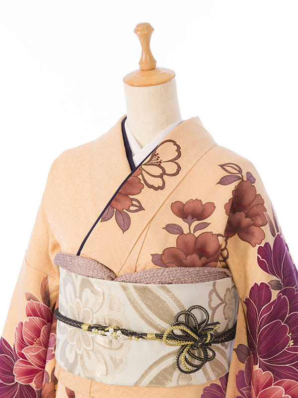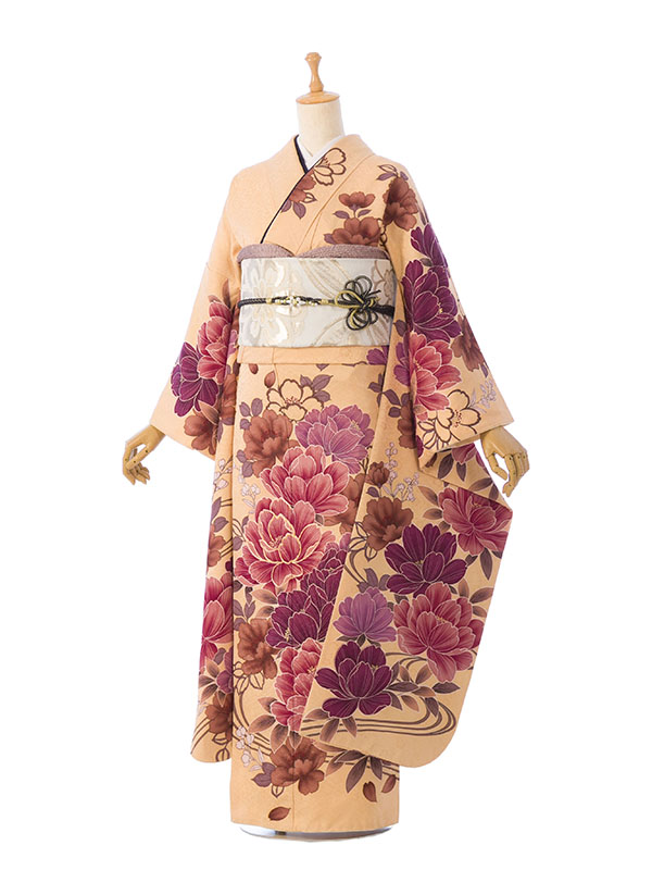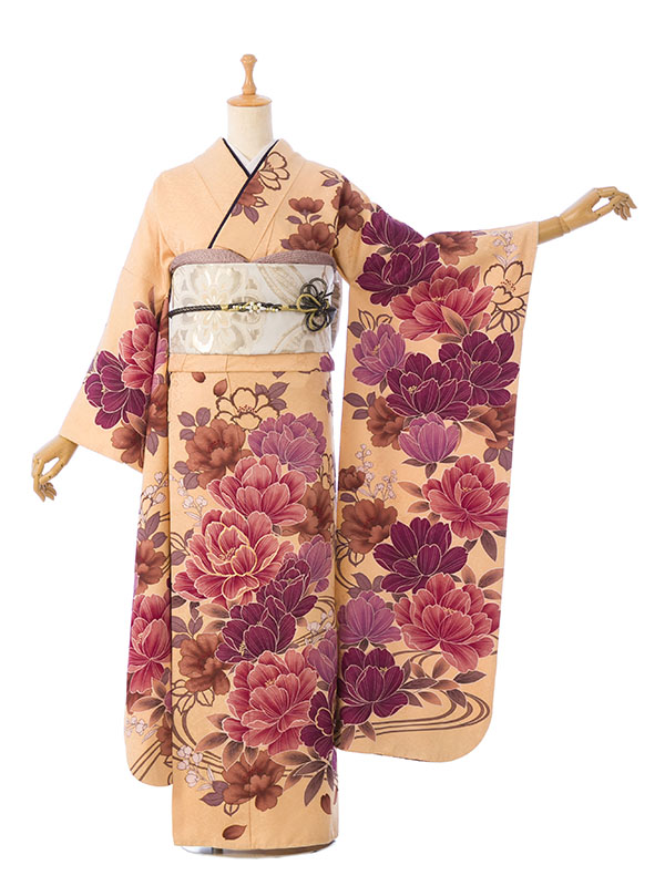 振袖|ベージュ系|牡丹|対応身長:153-165cm|サイズ:7号-13号|6S179